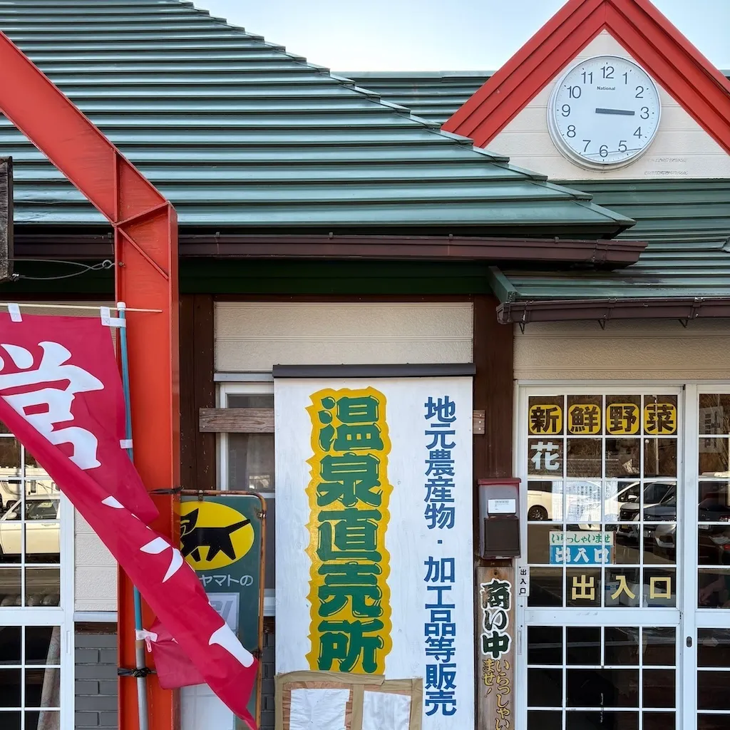 野菜の直売所がありました。温泉はとても賑わっていました。少し石油臭のする滑りのあるお湯でした。