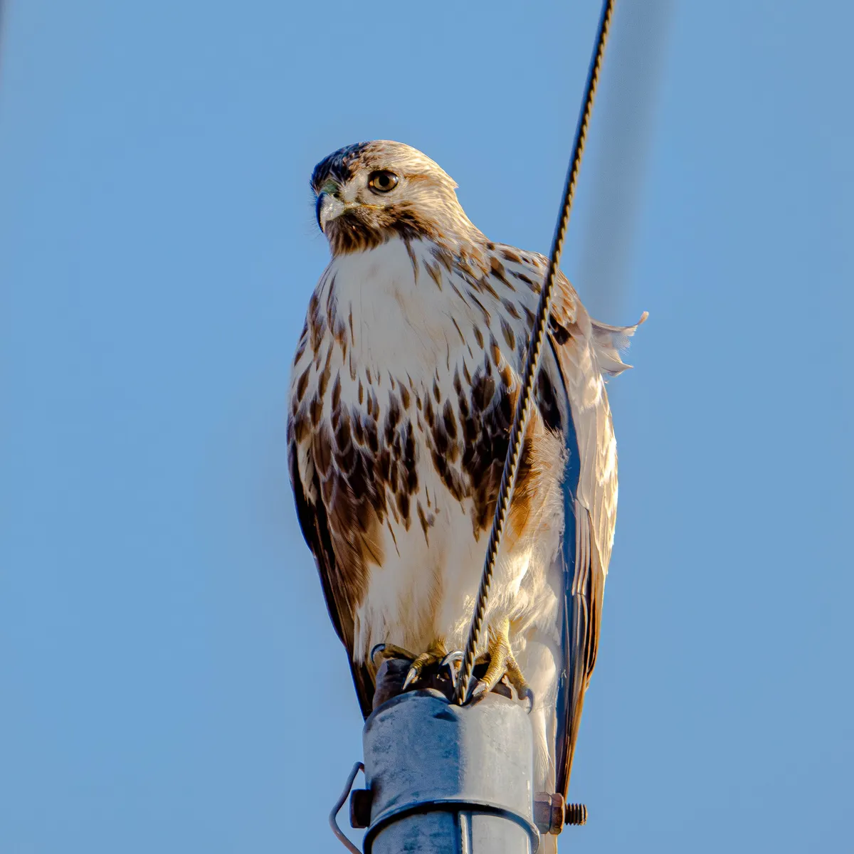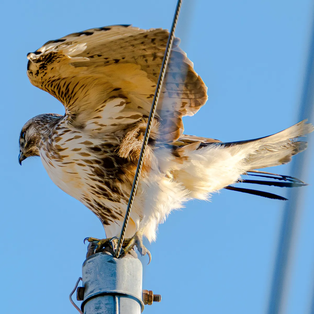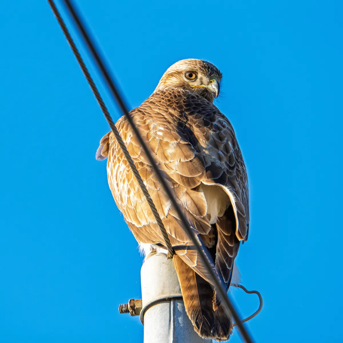 電柱に停まっていたので下から撮ると電線が映ってしまう🥲