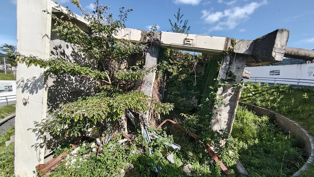 年々朽ちて木が茂り、自然に還りつつありますが、草枯らすのもなんか違う気がするし、震災遺構の保存の難しさ。。。