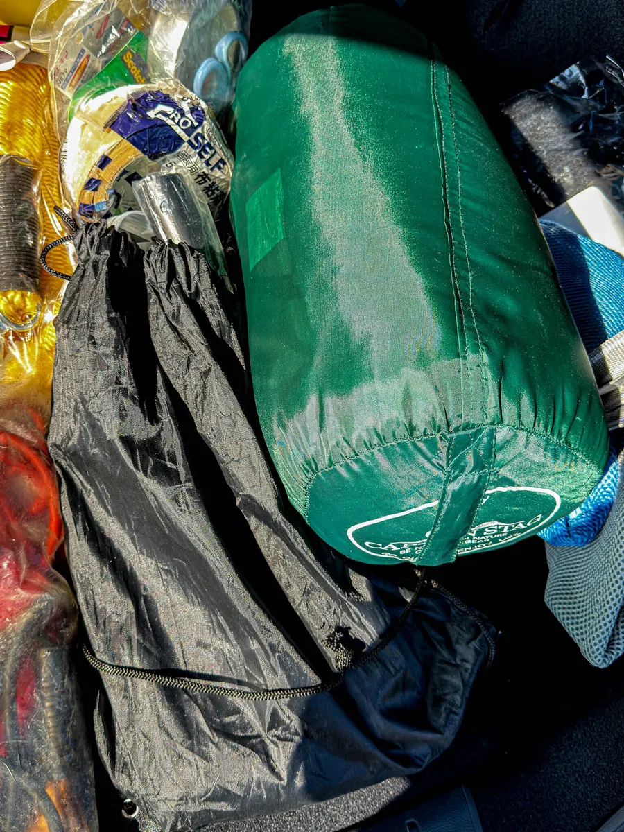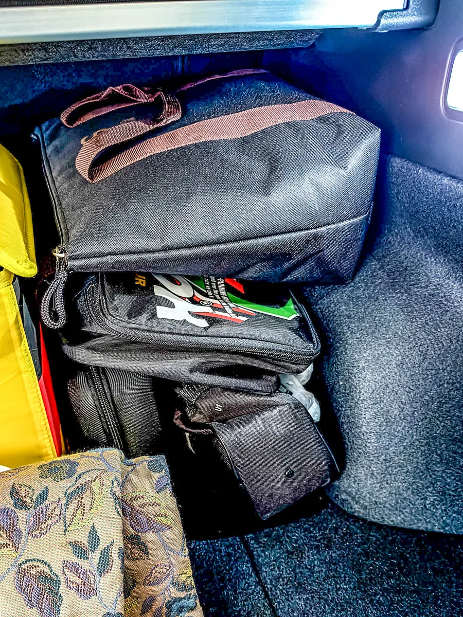 プラ製コンテナとビニール製BOX、バッグ類でラゲージスペースの1/3くらいを使ってる💦