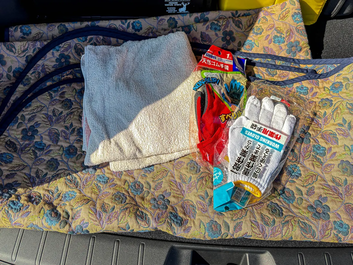以前友人が秋に高速上で大きな地震に遭い車内で一晩過ごした事があったので、簡単な防寒の備え(フリース、ブランケット、防寒用アルミブランケットシート)は常に車内に置いてます。