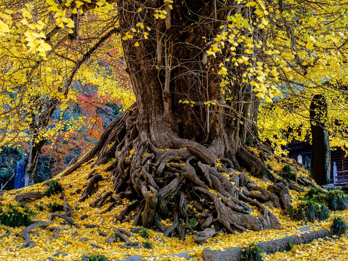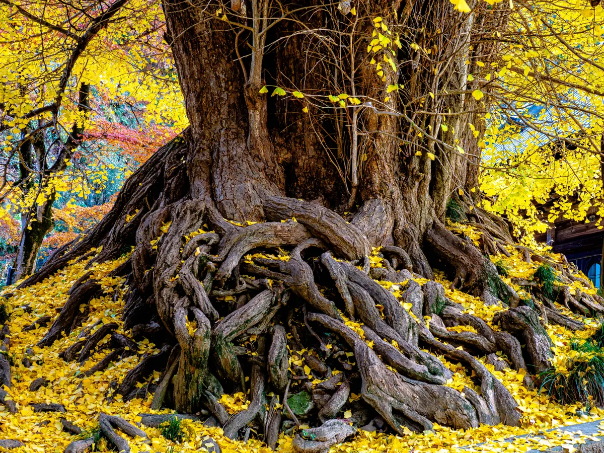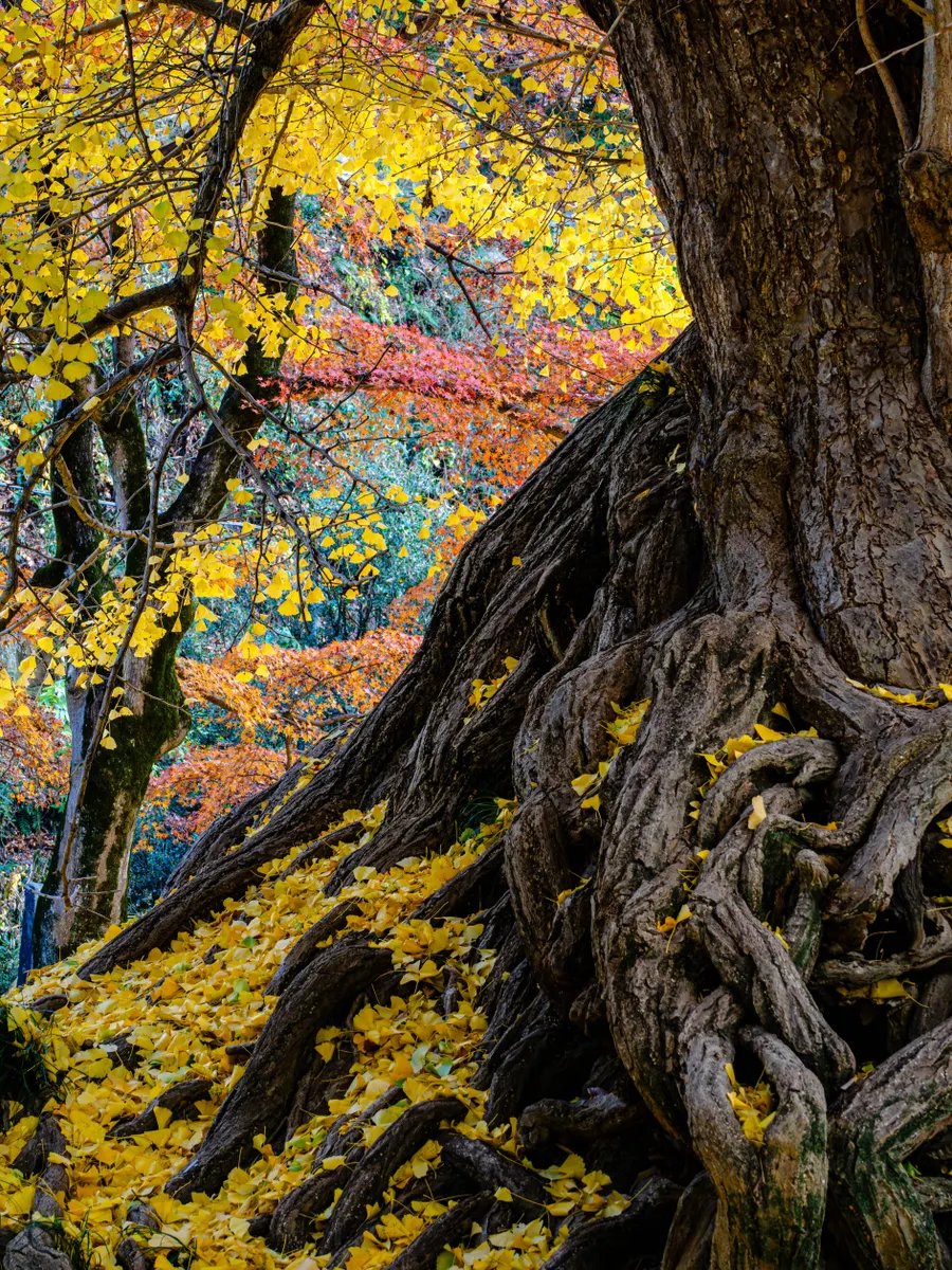 どのくらい前からここに立っているんでしょうか…根っこも大迫力ですね〜。