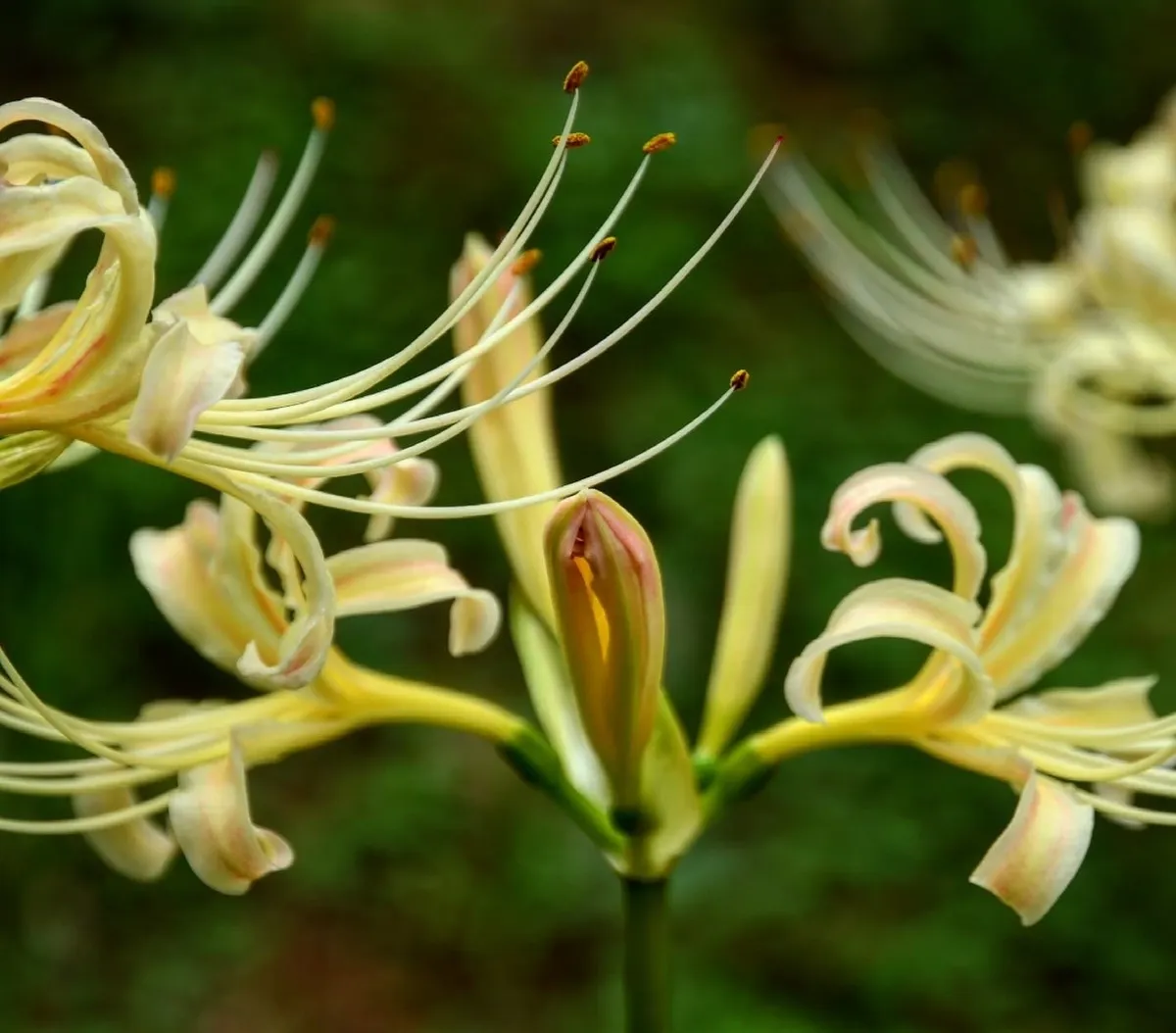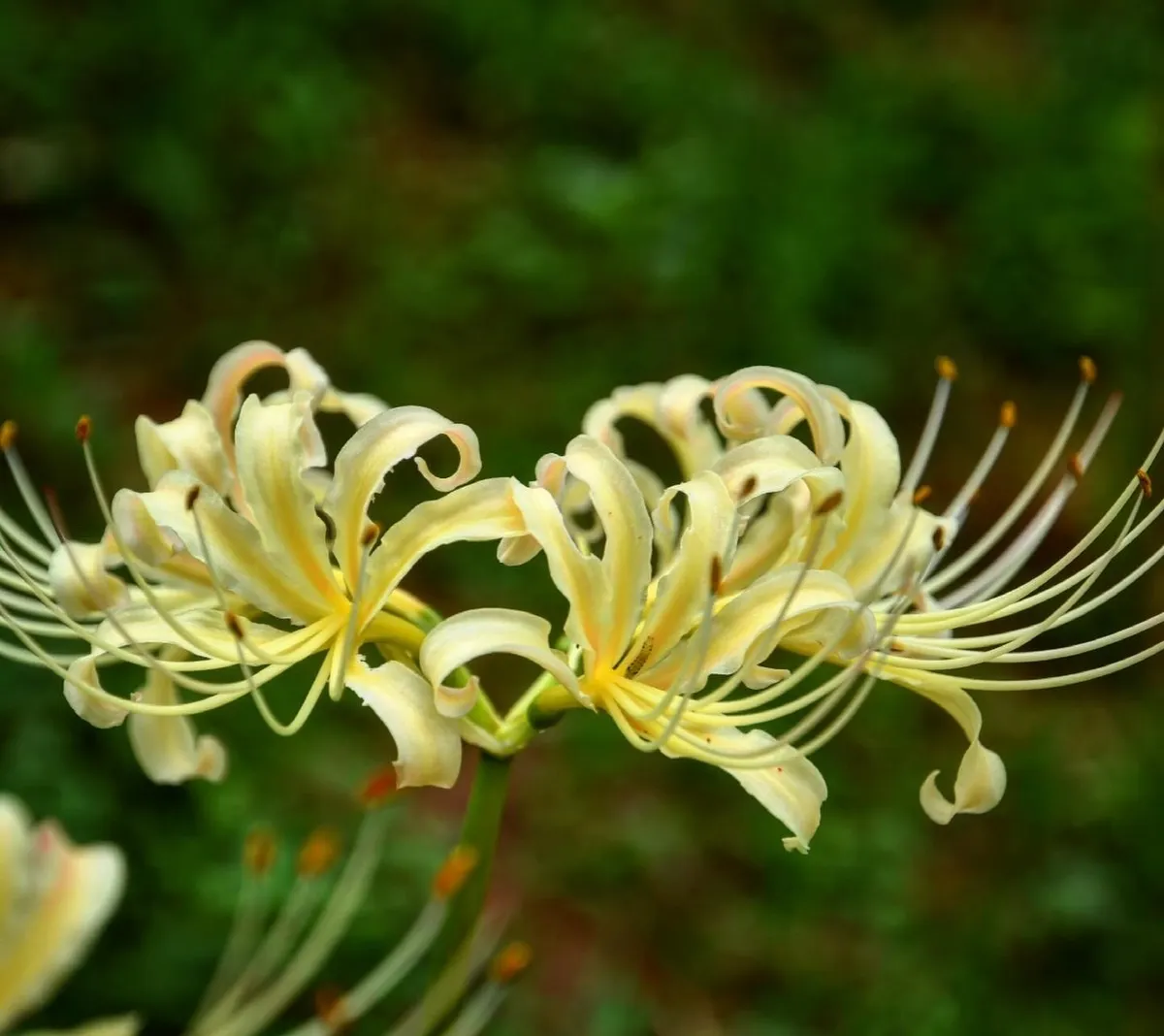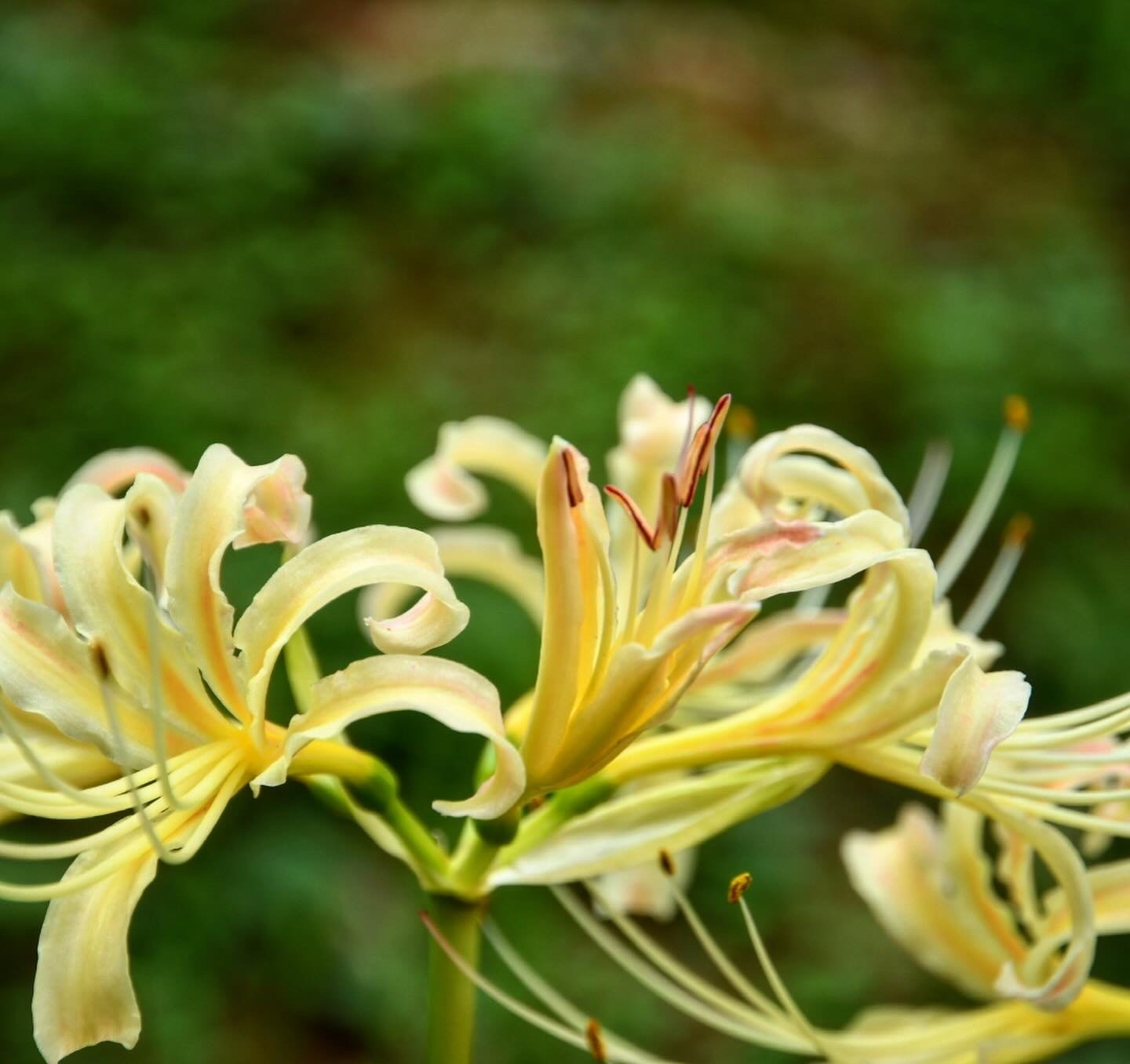 彼岸花の花は赤い花が多いですが、白くて黄味がかった色の彼岸花の花も清楚ですてきだなと思いました🙂