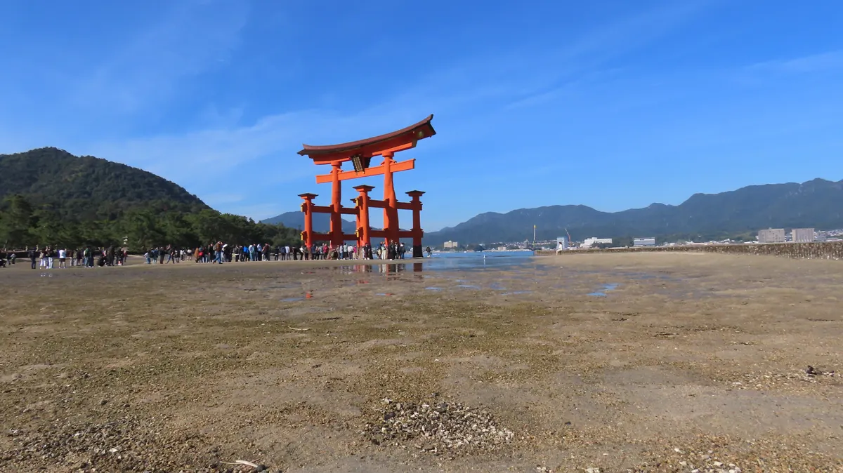 今回はしっかりとその姿を拝むことができました。しかも干潮で鳥居の下まで近づけた。