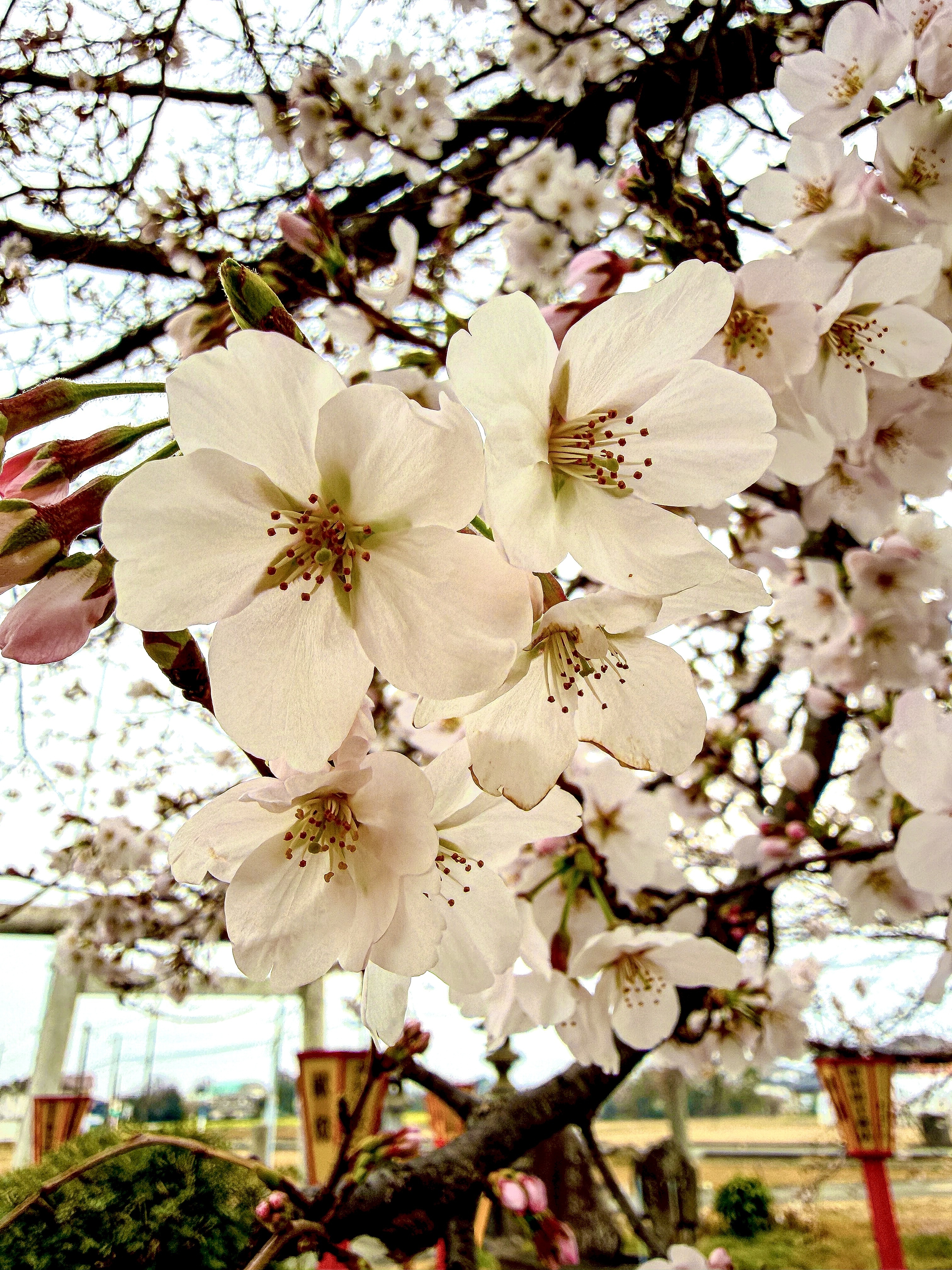 ここ数年、桜の時期に愛車写真を撮りに寄っている神社の横を通ったので、現在の開花状況を確認しに寄ってみました