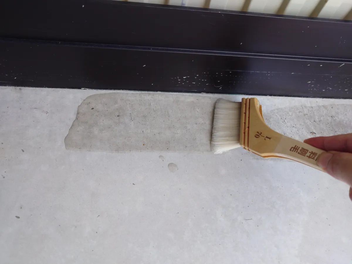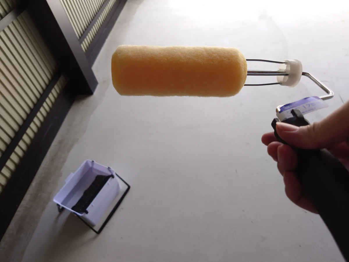 壁際の部分は刷毛を使用します。ある程度ハケ塗りしてから⋯