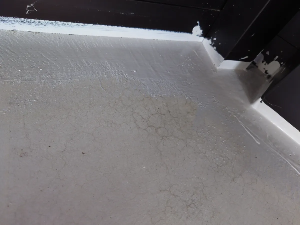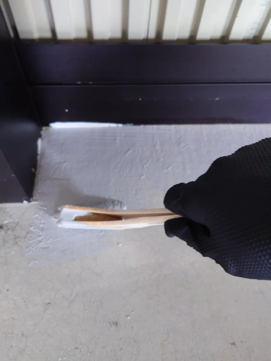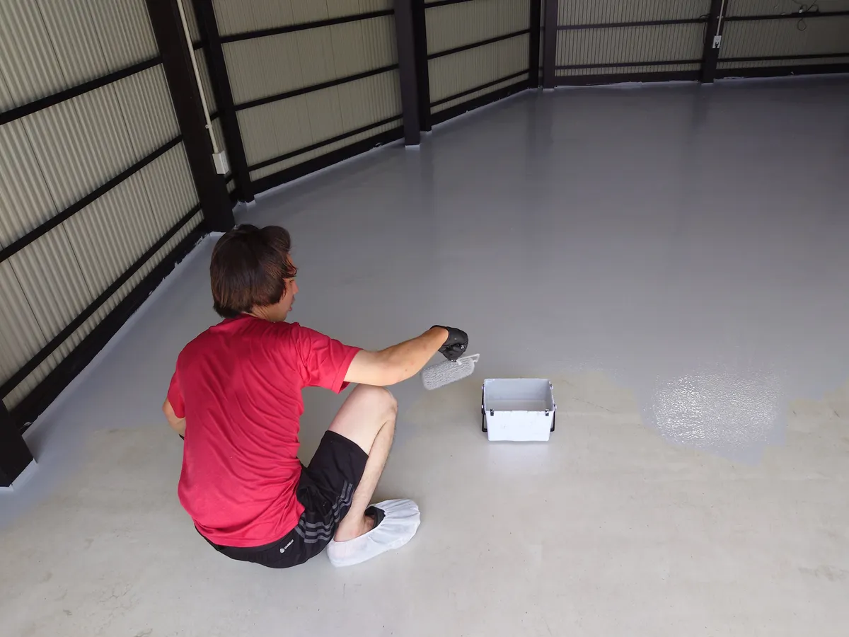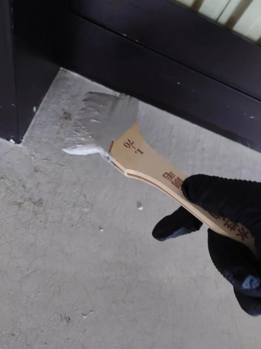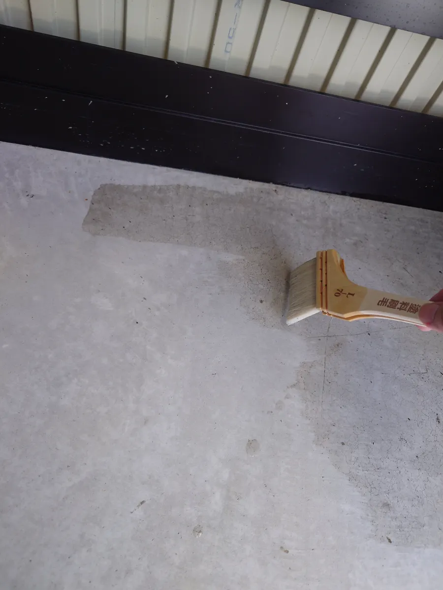 床面清掃の後、早速作業に取り掛かります。最初は塗装の付きを良くするために下地用シーラーを塗布します。