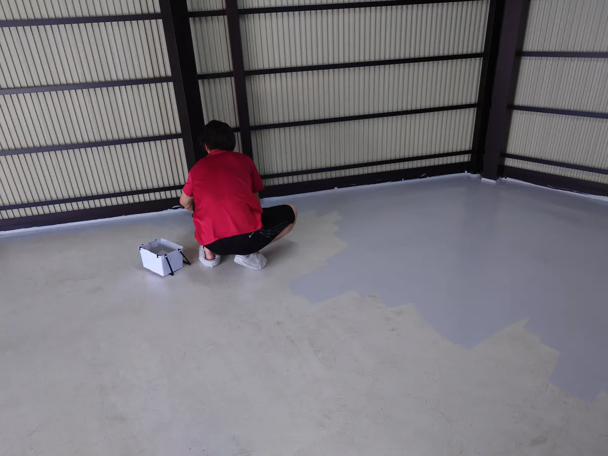 とは言っても⋯車の塗装ではなく、ガレージコンクリート床面塗装です。