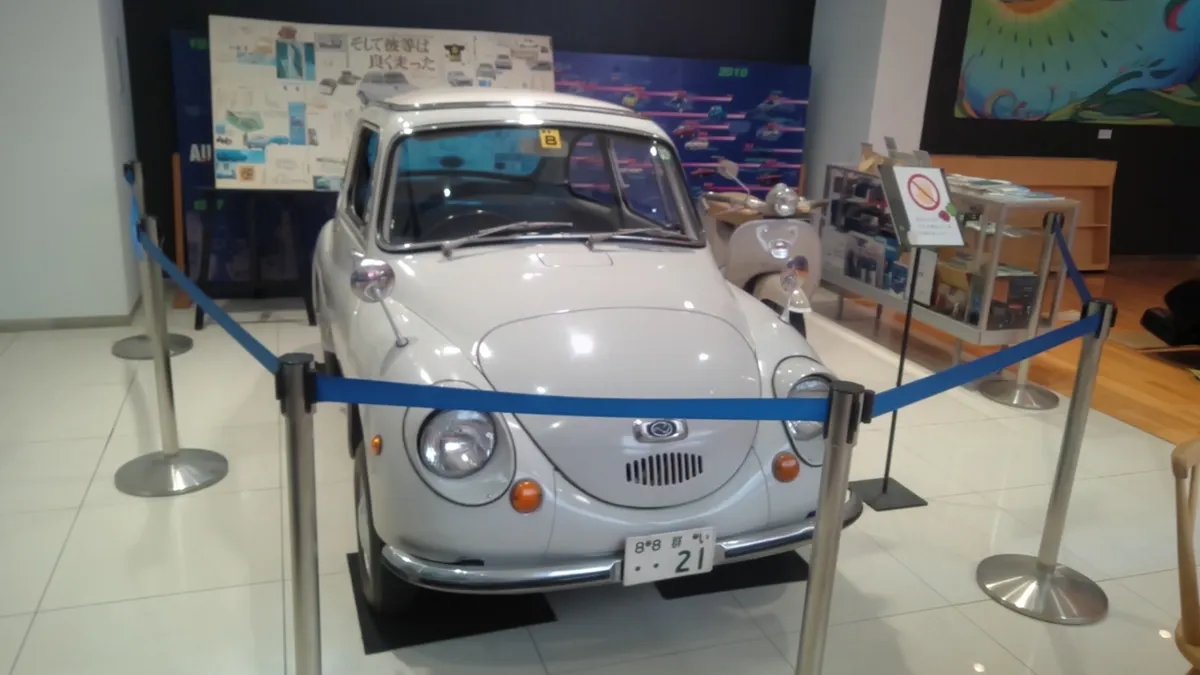 店内には、「スバルの始まり」とでも言うべきラビットスクーターと、スバル360が。
