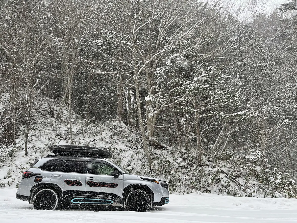 やっぱり冬の北日本は雪が多そうで、フォレスターほどのタイヤハウス内スペースがあっても、やはり頻繁に雪が付くんですね😳