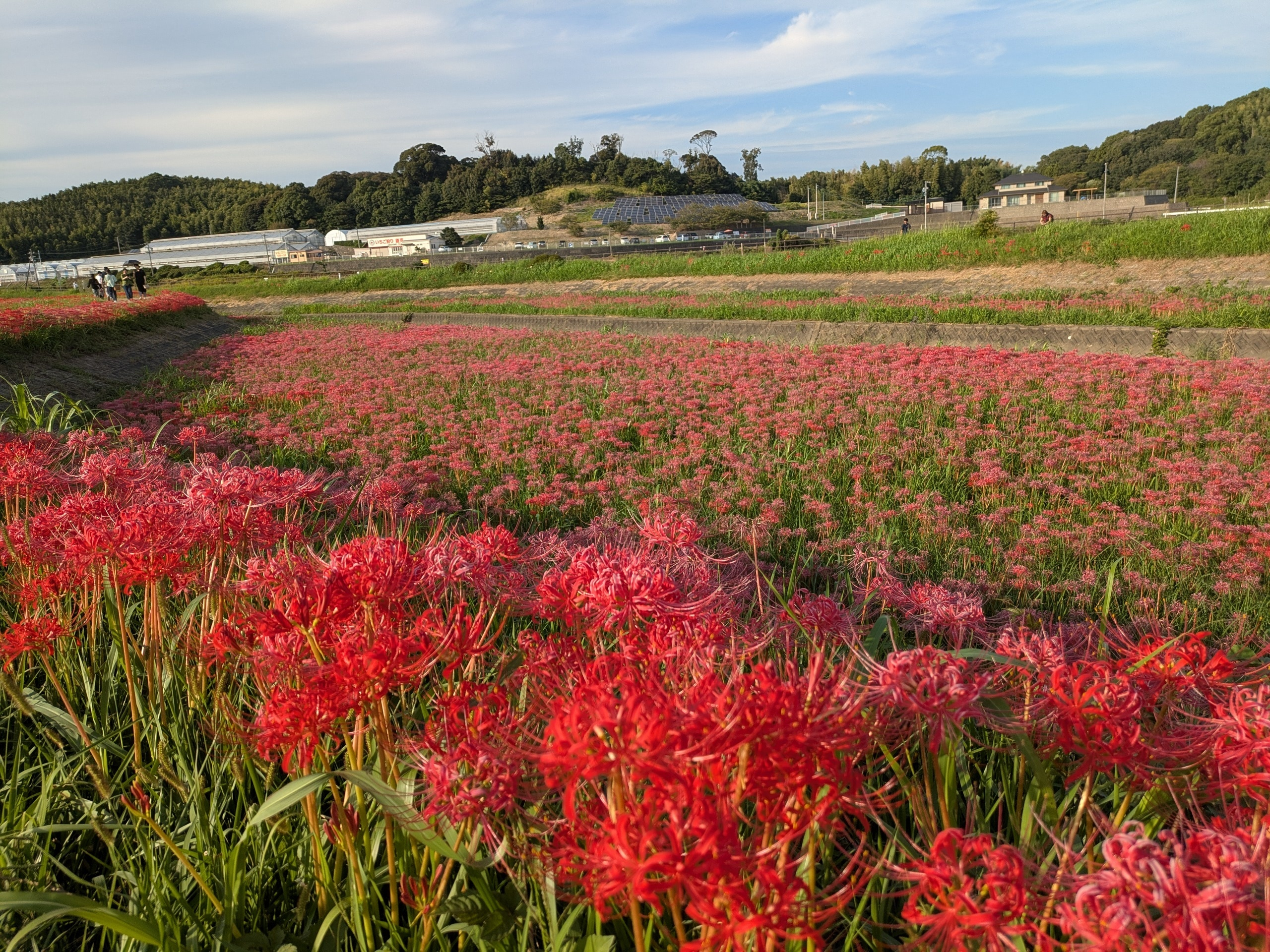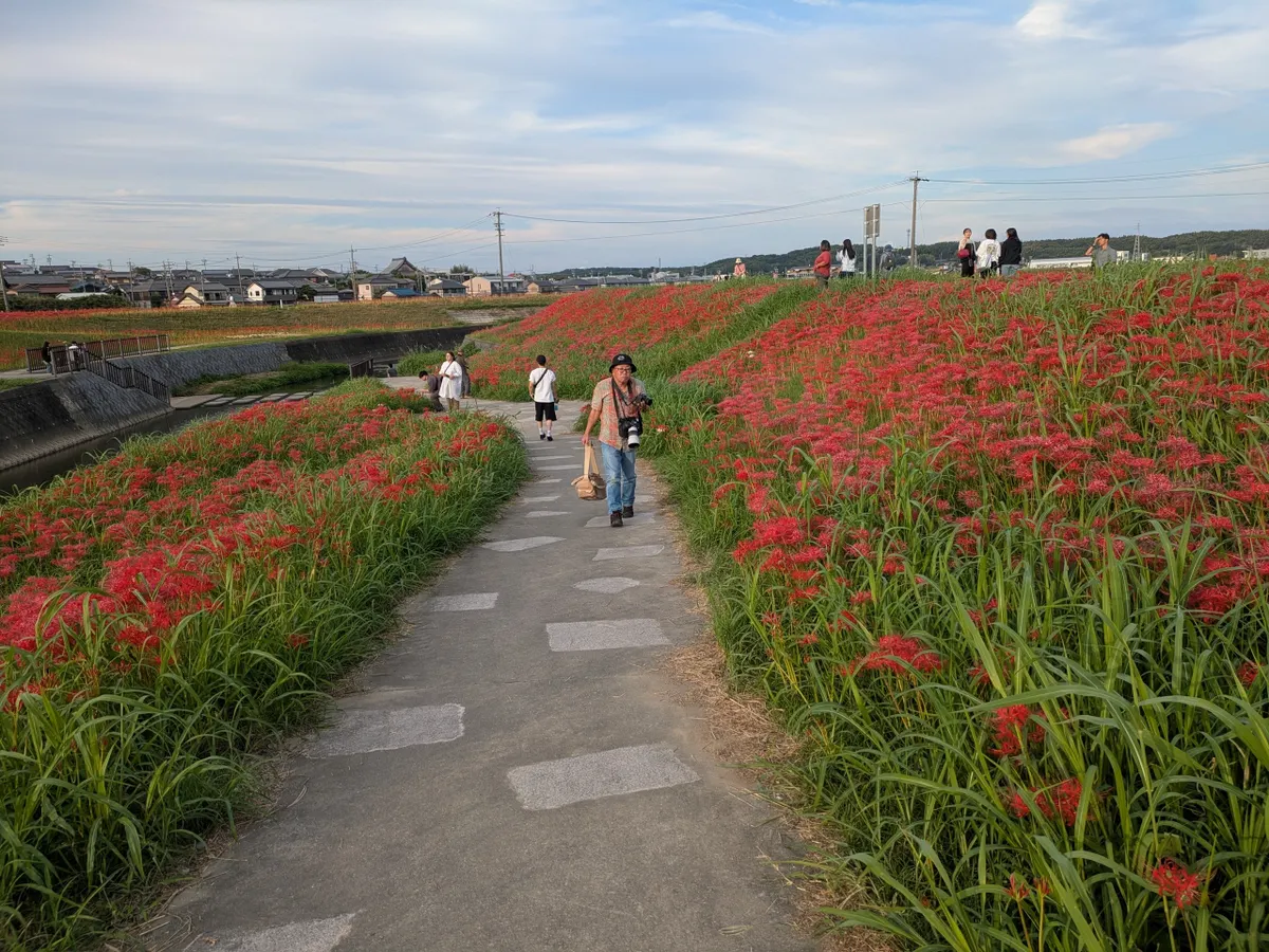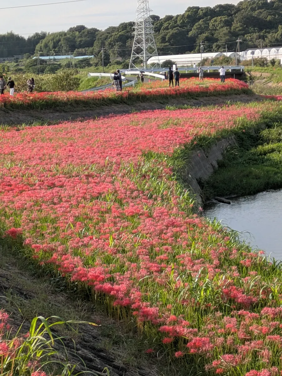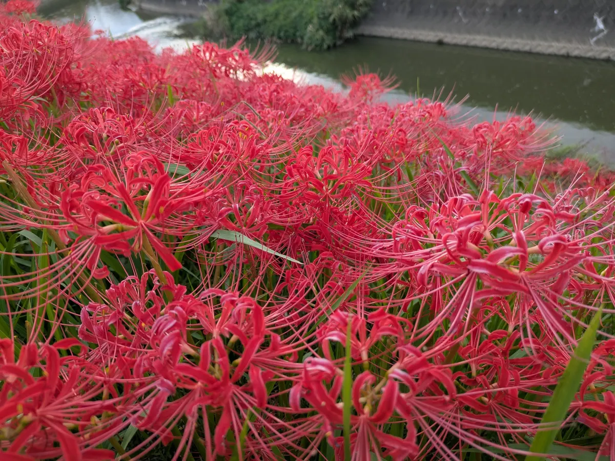 ここは有名なスポットと聞いていますが、対岸にもずーっと彼岸花が咲いているのですね!