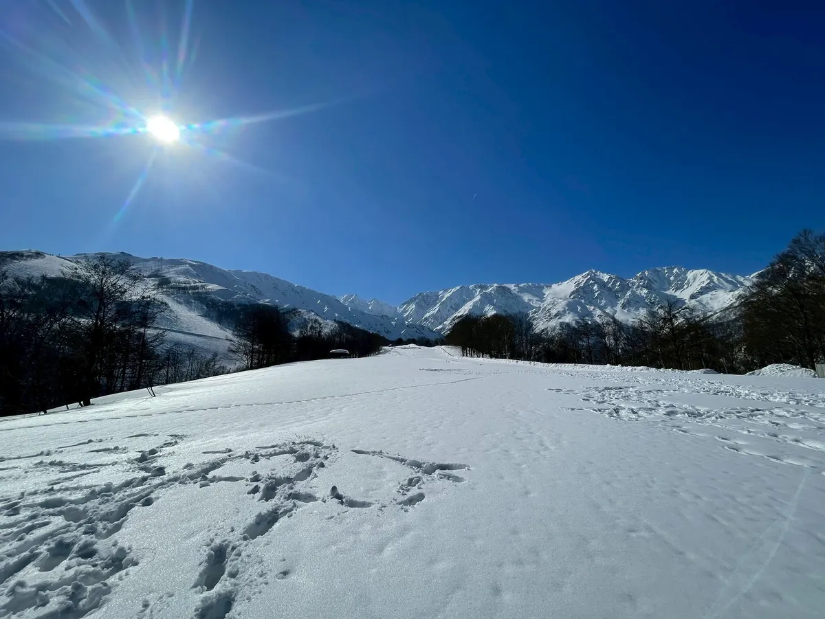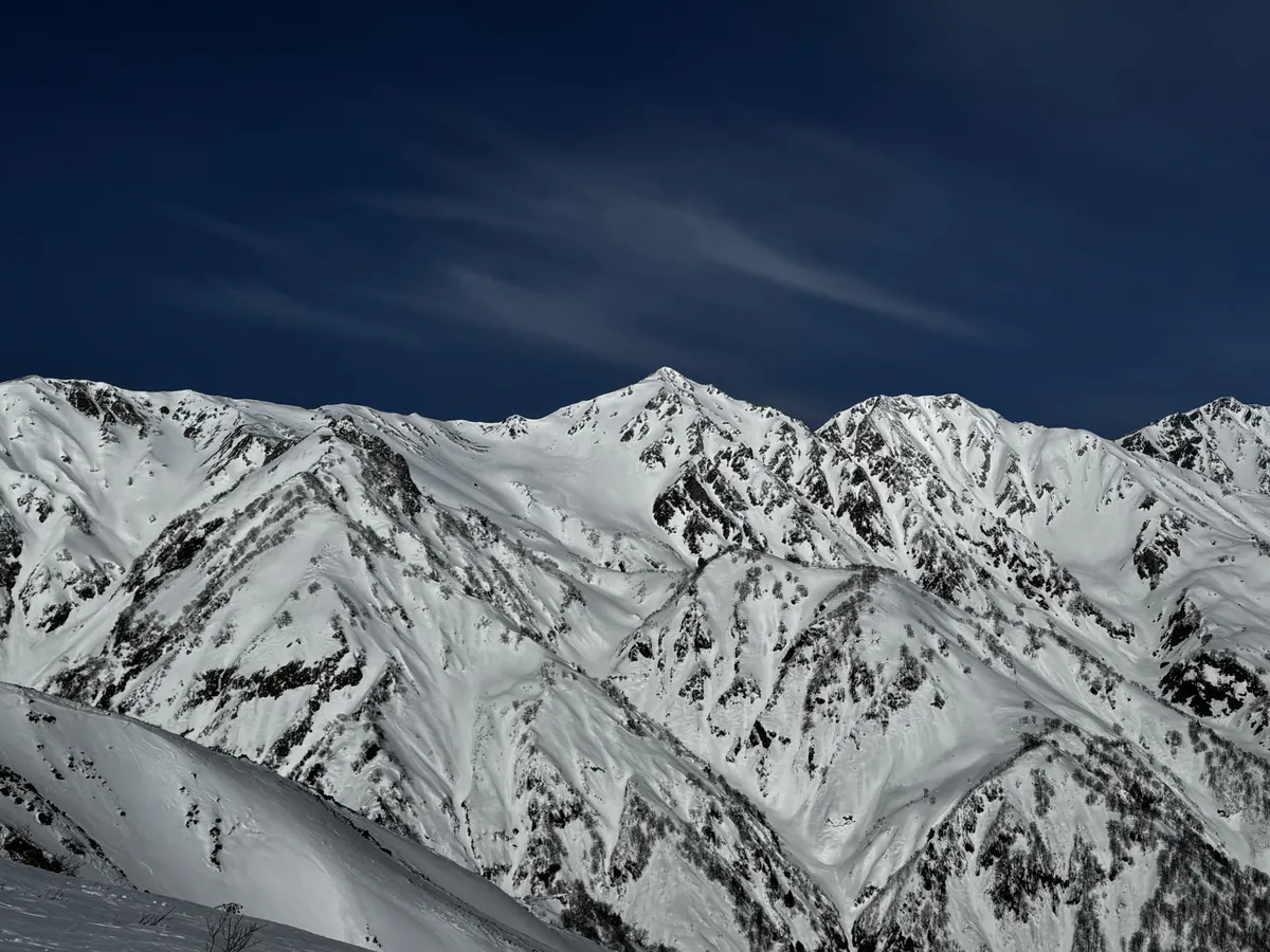 白馬八方尾根での快晴スキー、素晴らしい景色ですね!