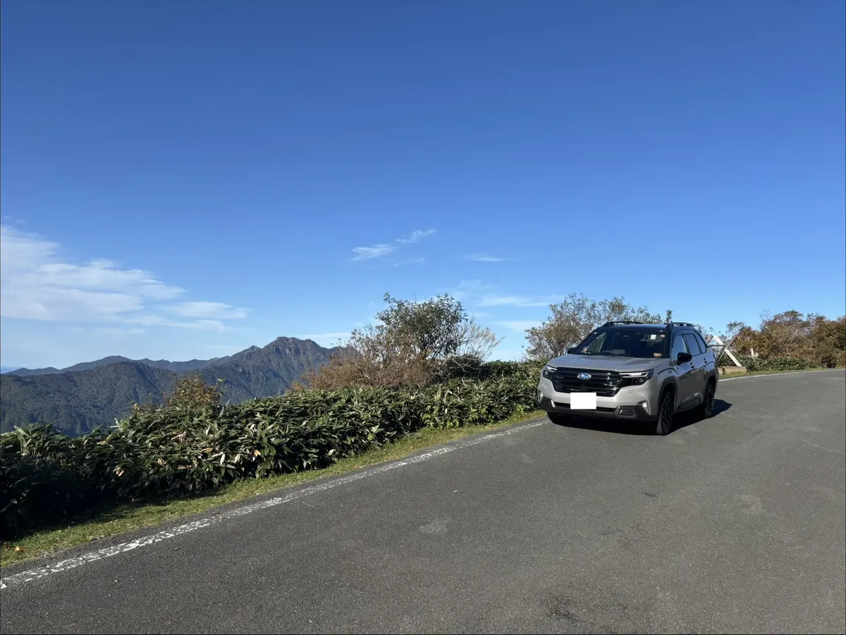 こんなにも車で登れるのと、石鎚山から室戸岬まで見渡せるなんて初めて知りました。自然の風景とフォレスターはやっぱりよく似合いますね。自分も山道ドライブに出かけたい気分になりました。