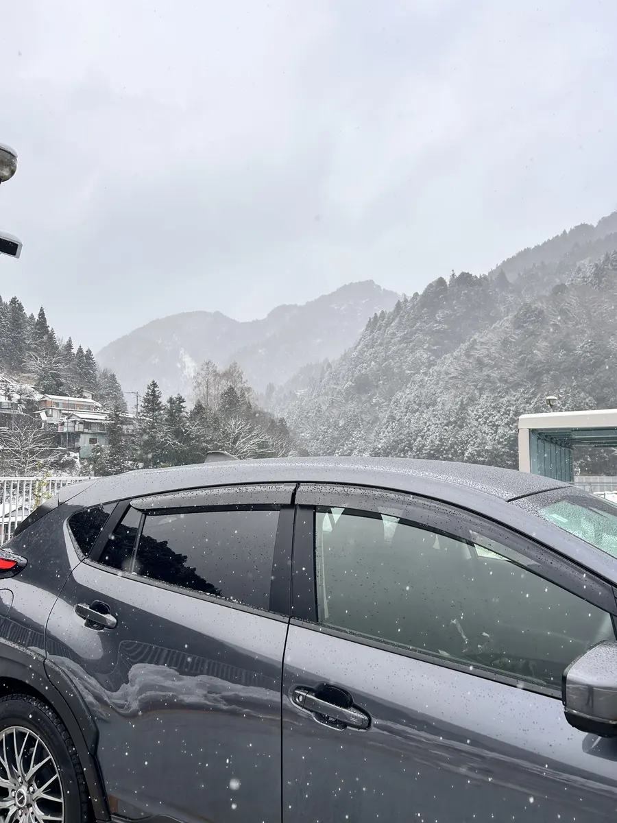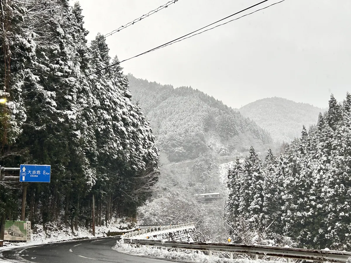 ICを降りても雪がなく失敗したと思いながら走っていると、山を一つ越えたところで雪国のような景色が目の前に広がりました⛰️❄️🌨️