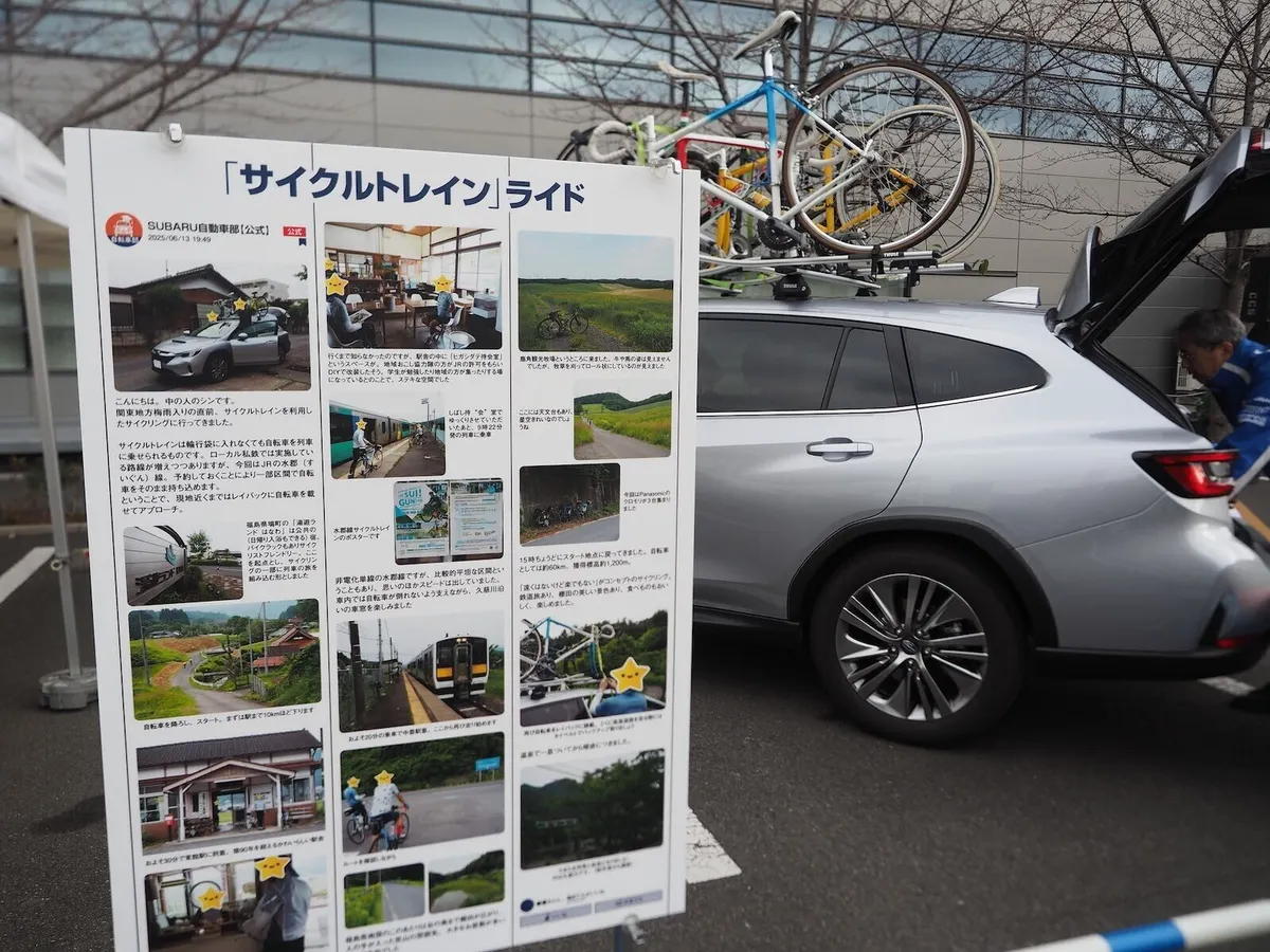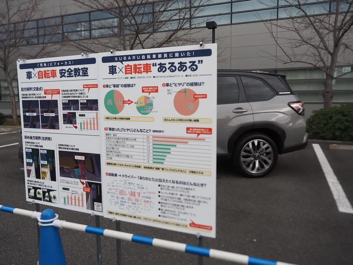 「いのちを守る」「SUBARUの提供する愉しさ」「地域共創」といったお題を主催者からもらったので、部内で企画を相談。いくつかの候補を順位付けし、安全に関するものとして「死角」を体験する教室と、スバ学投稿を再現した自転車満載のレイバックを出展することに。