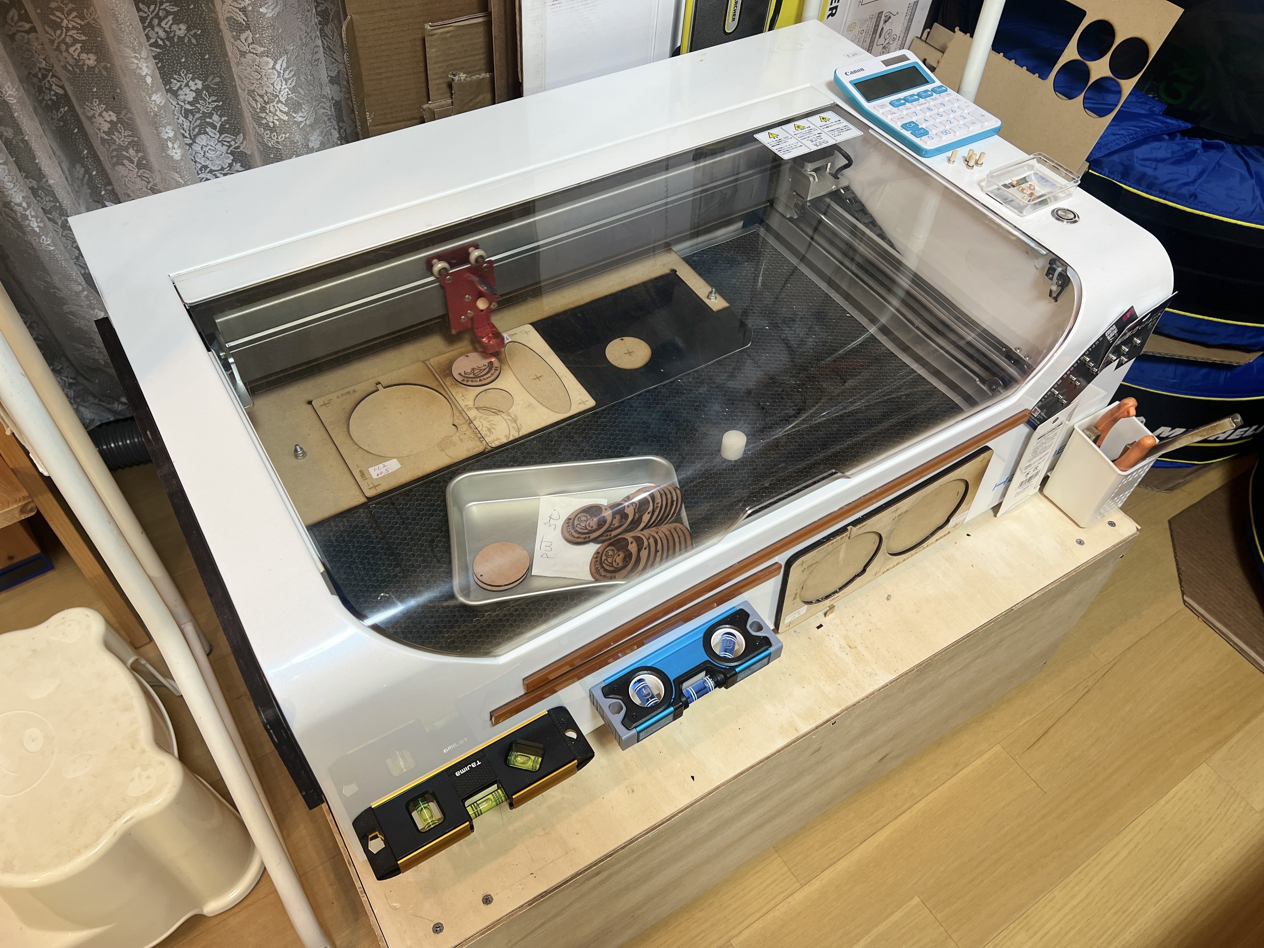 レーザー加工機を動かしながらグダグダ作業です。