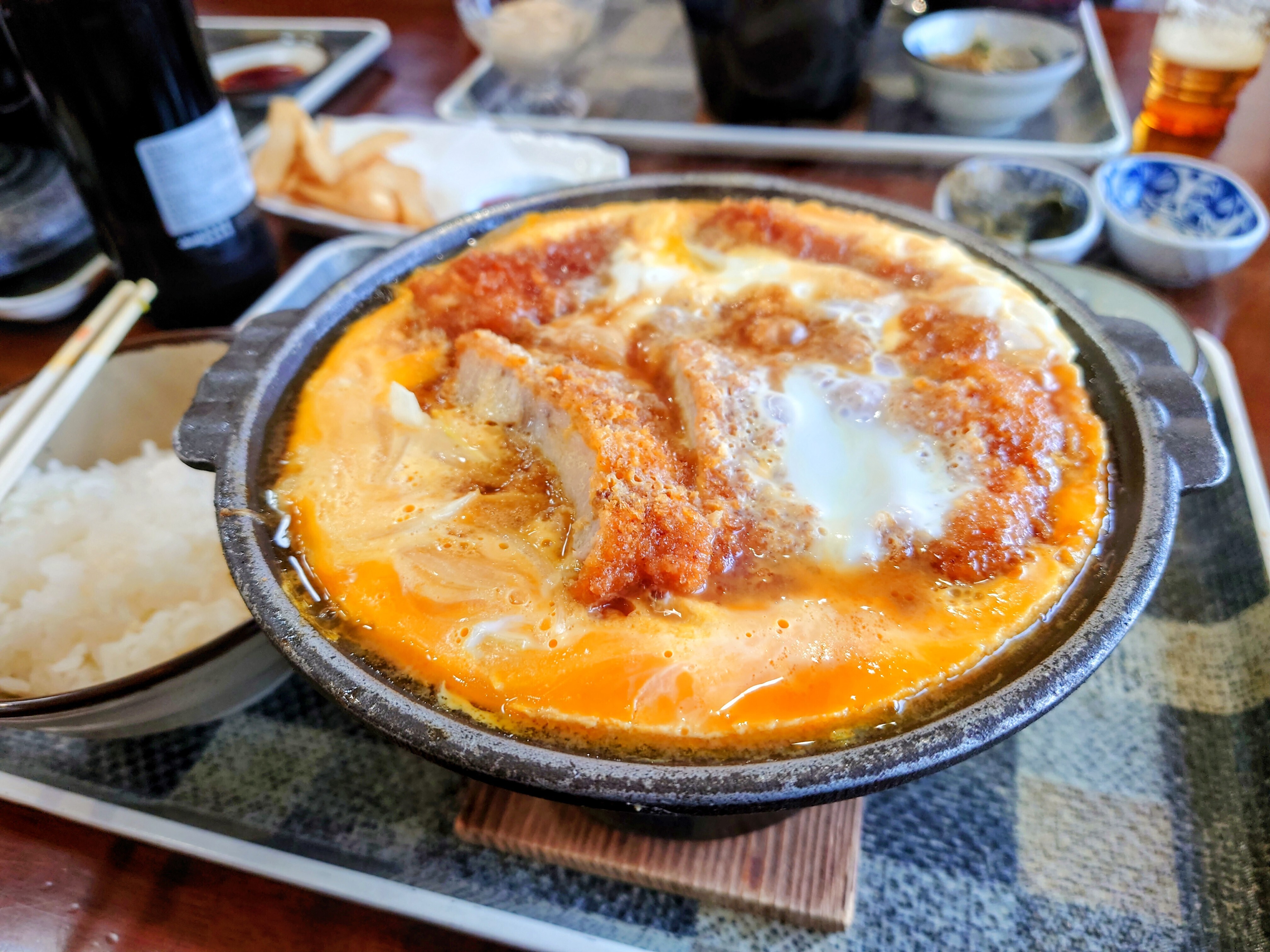 お昼は行きつけの食堂のかつ鍋定食!✨