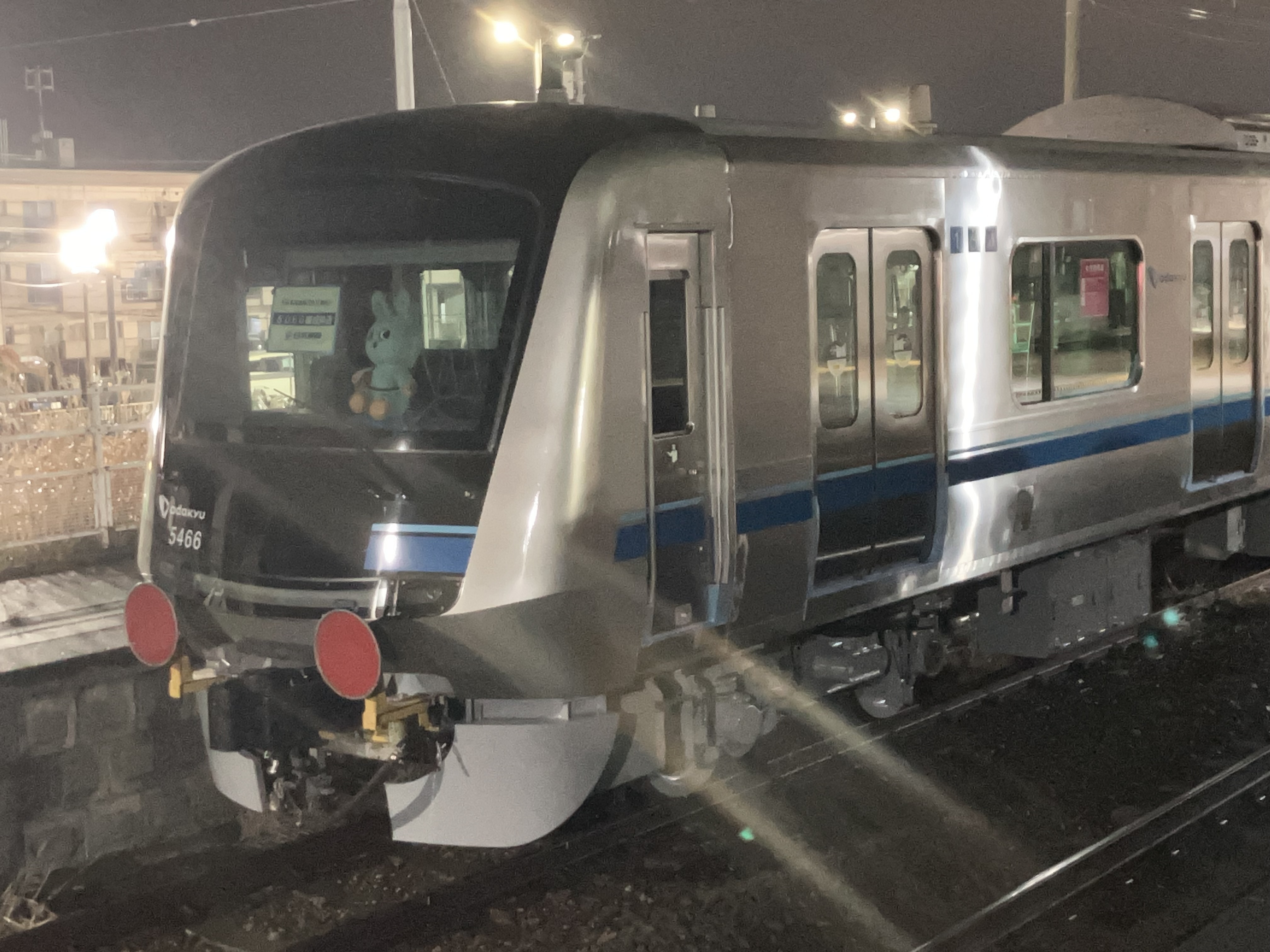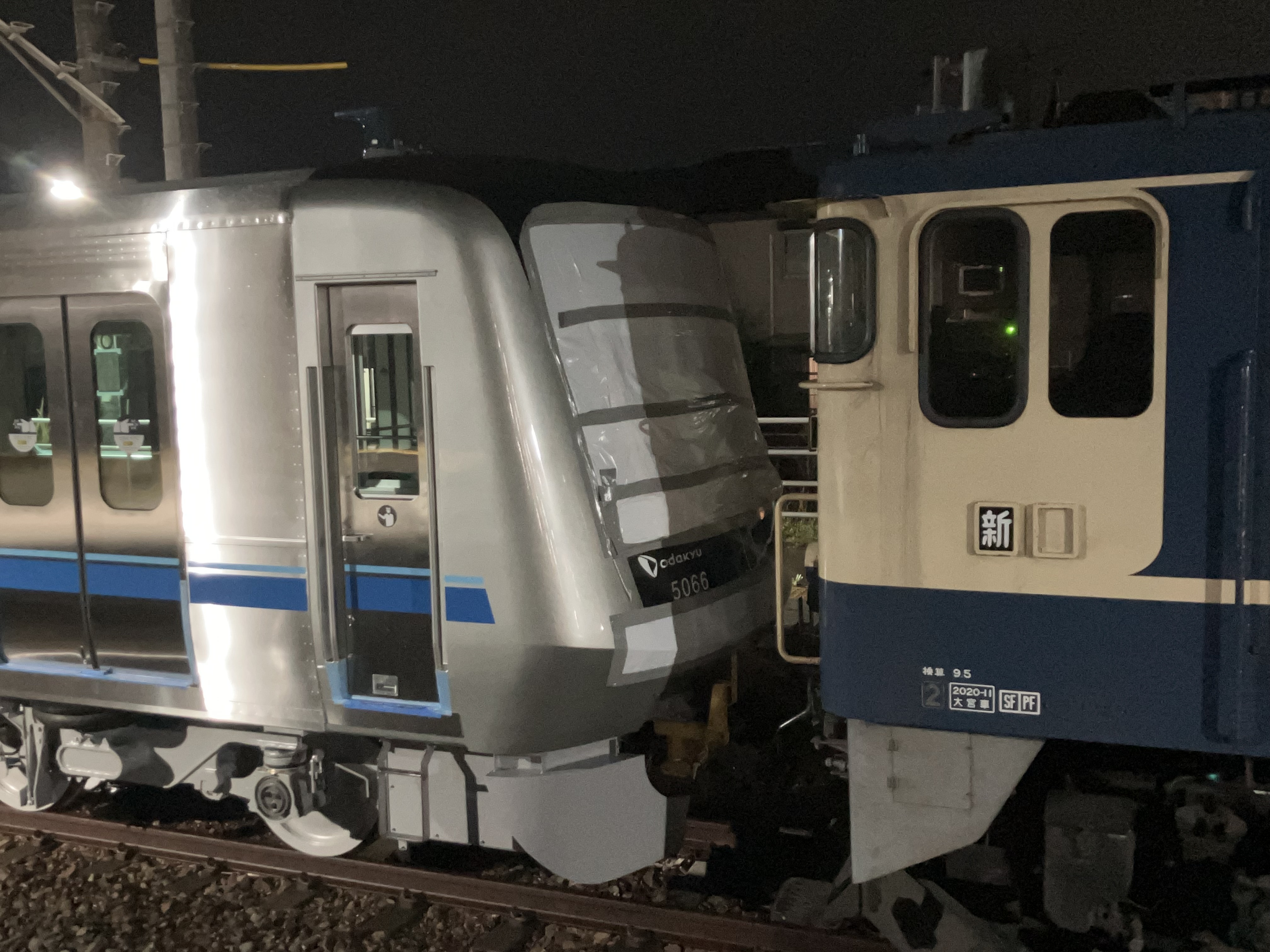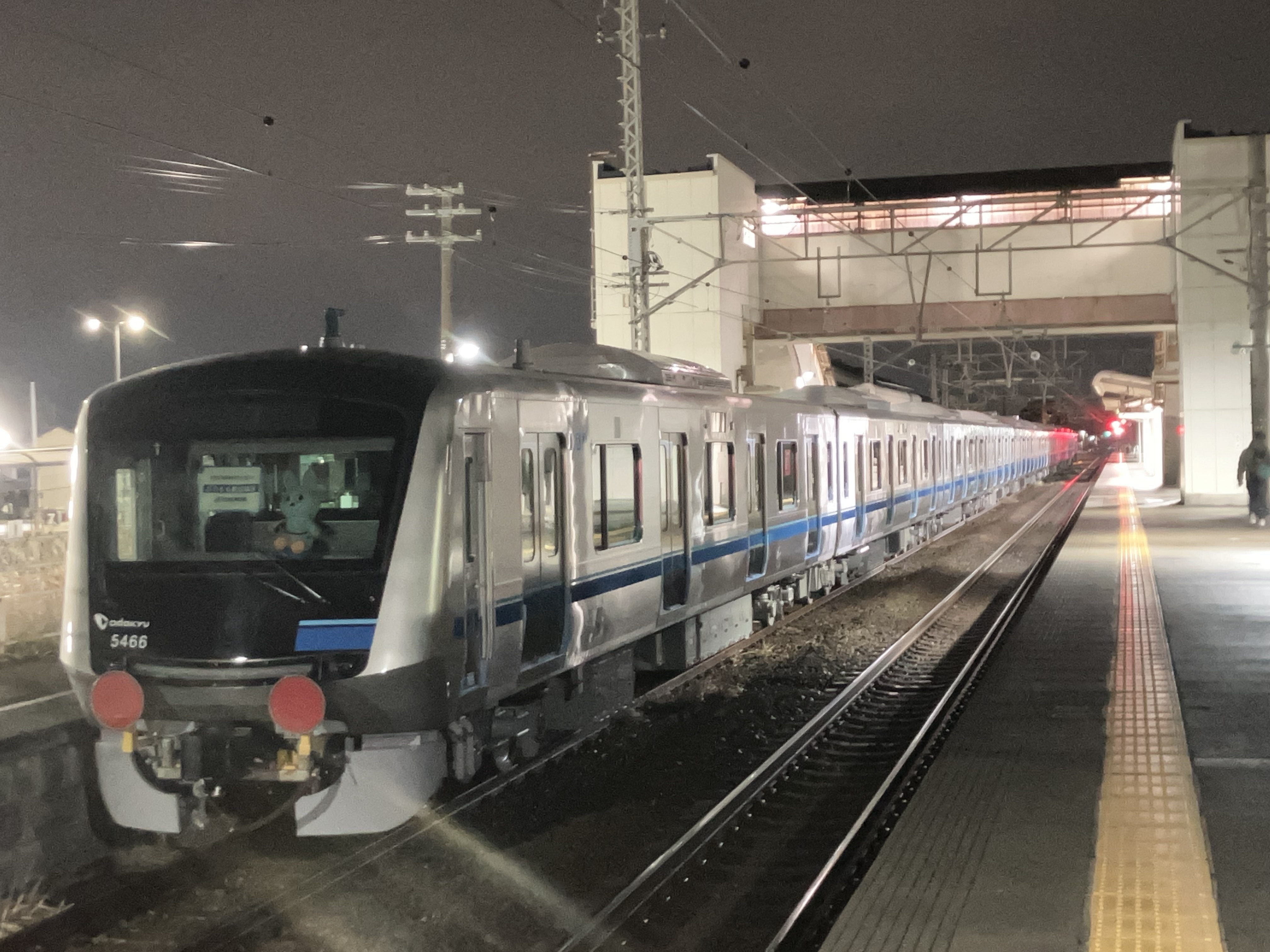 新造の小田急列車を移送中の様です。ピカピカ✨ボディに塗装も新しい足廻りです。これはビックリ🫢 撮り鉄さん達も数人ホームを行ったり来たり。一緒になって一夜限りの撮り鉄になってしまいました。^_^