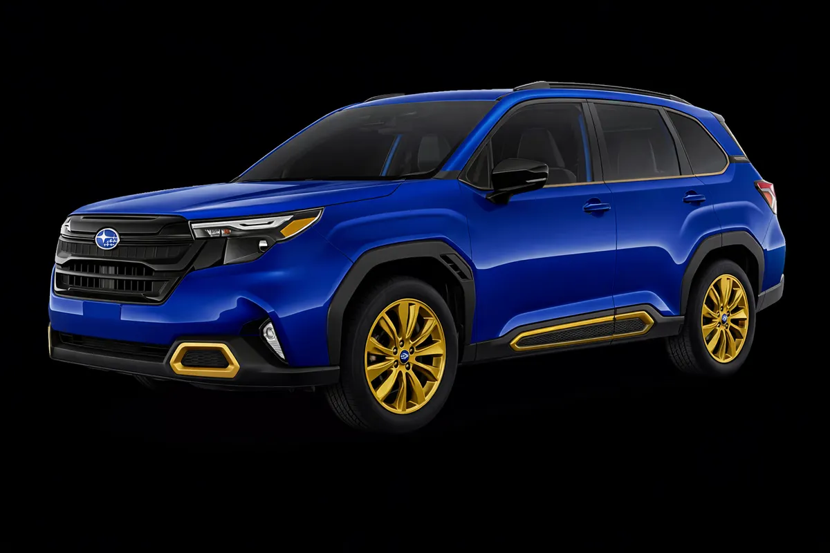 かつてのWR-Limitedを現代風に作ってみました‼ それぞれのベース車両はフォレスタースポーツ・EXとクロストレックスタイルエディションです。どちらも比較的ゴールドに近いアクセントカラーが使われているため生成しやすかったです。