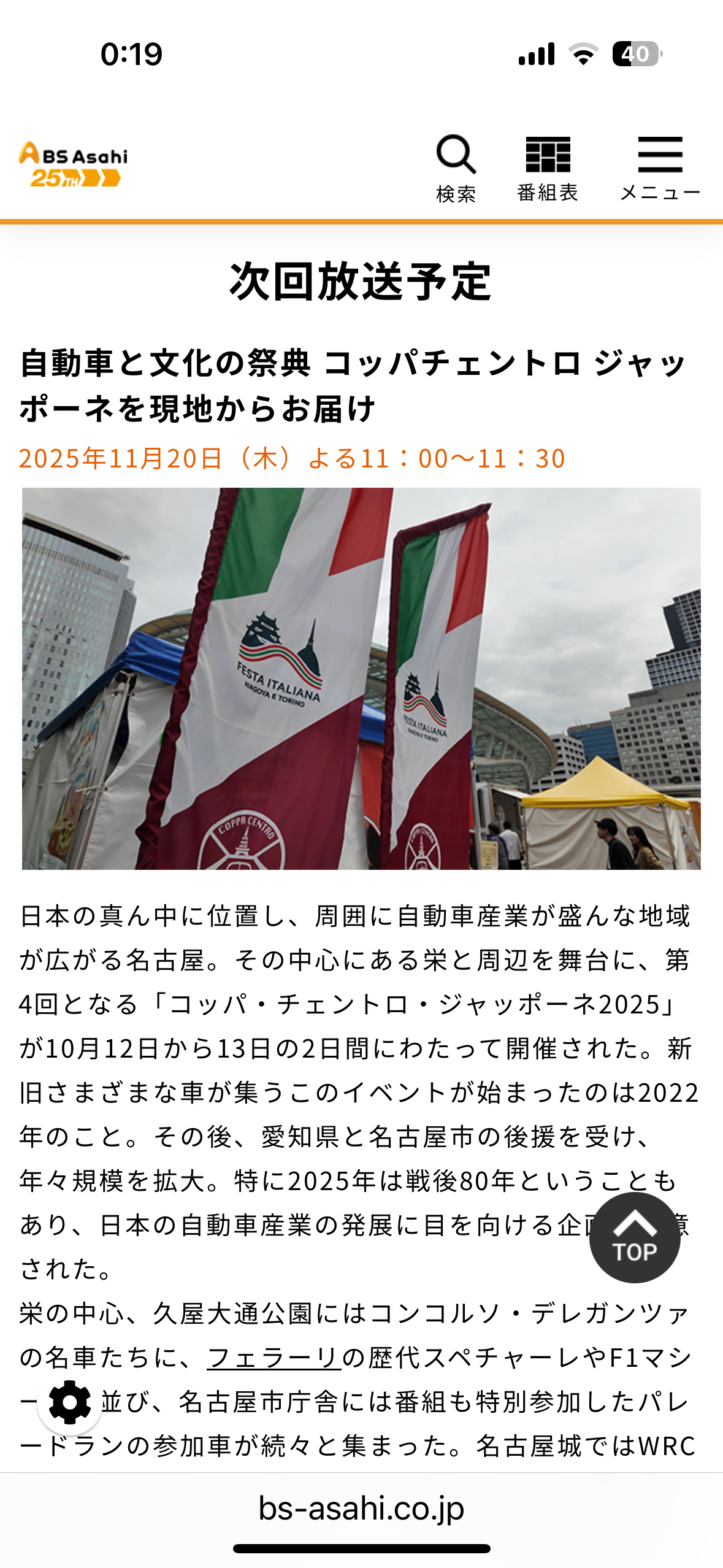 10/12、13に名古屋の栄で「コッパ・チェントロ・ジャッポーネ2025」が開催されていて会社が休みだったら絶対行っていた。