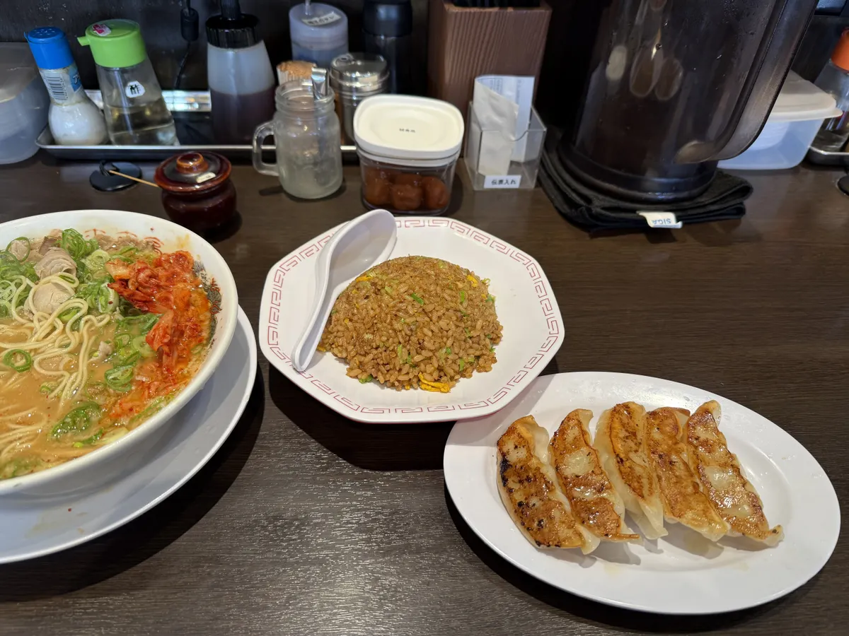 帰り道にはほぼ一年ぶりの来来亭で、こってりラーメンキムチトッピングのガッツリA定食(半チャーハンに餃子)を完食😋