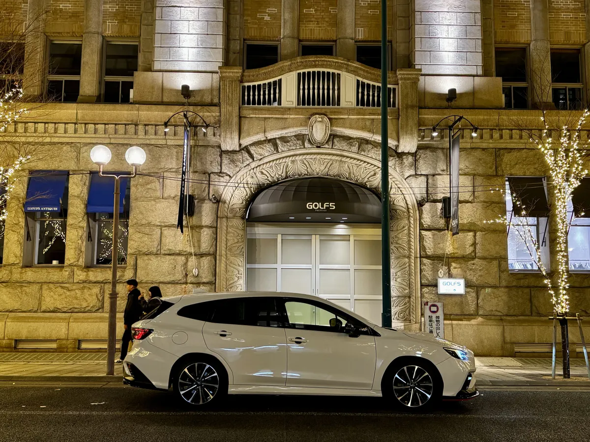 大丸の正面入口をバックに交差点の真ん中にクルマを停めて撮ってみたいですけど、無理ですよね…。AIで合成するしかないかな(笑)