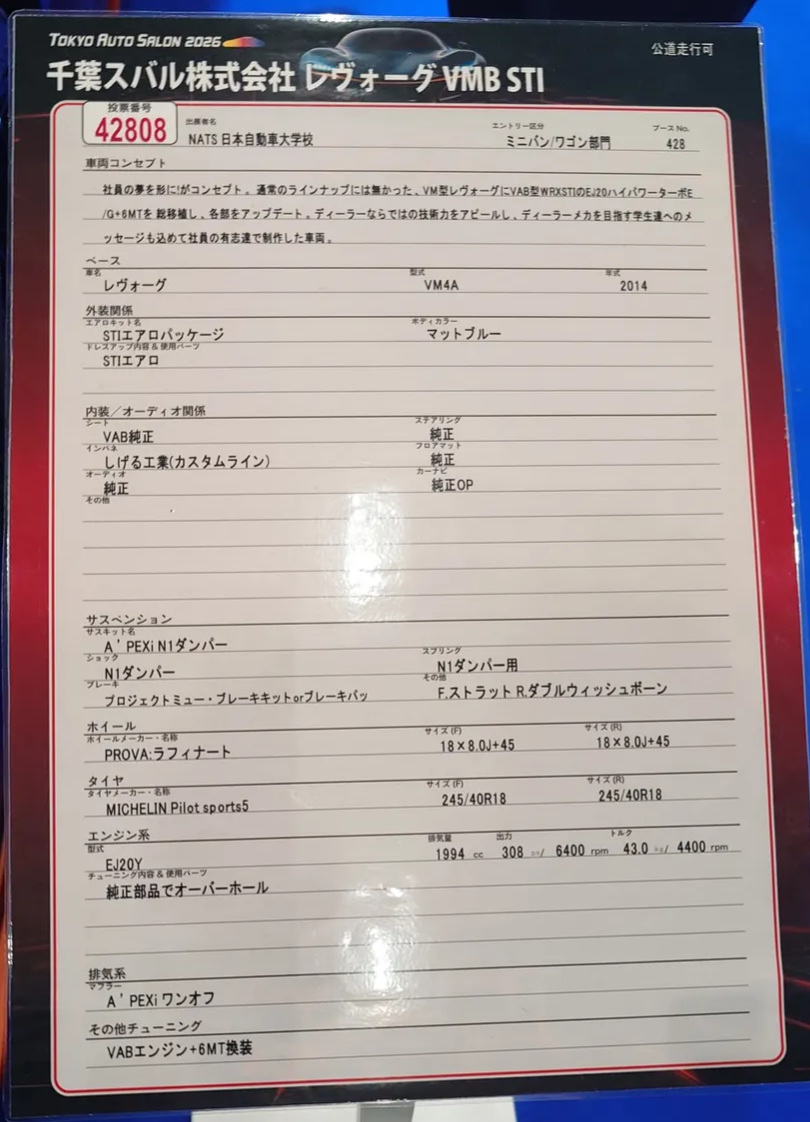レヴォーグ VMB STI(EJ20x6MT換装)を試乗できるとの情報を入手し、事前予約し、行ってまいりました。