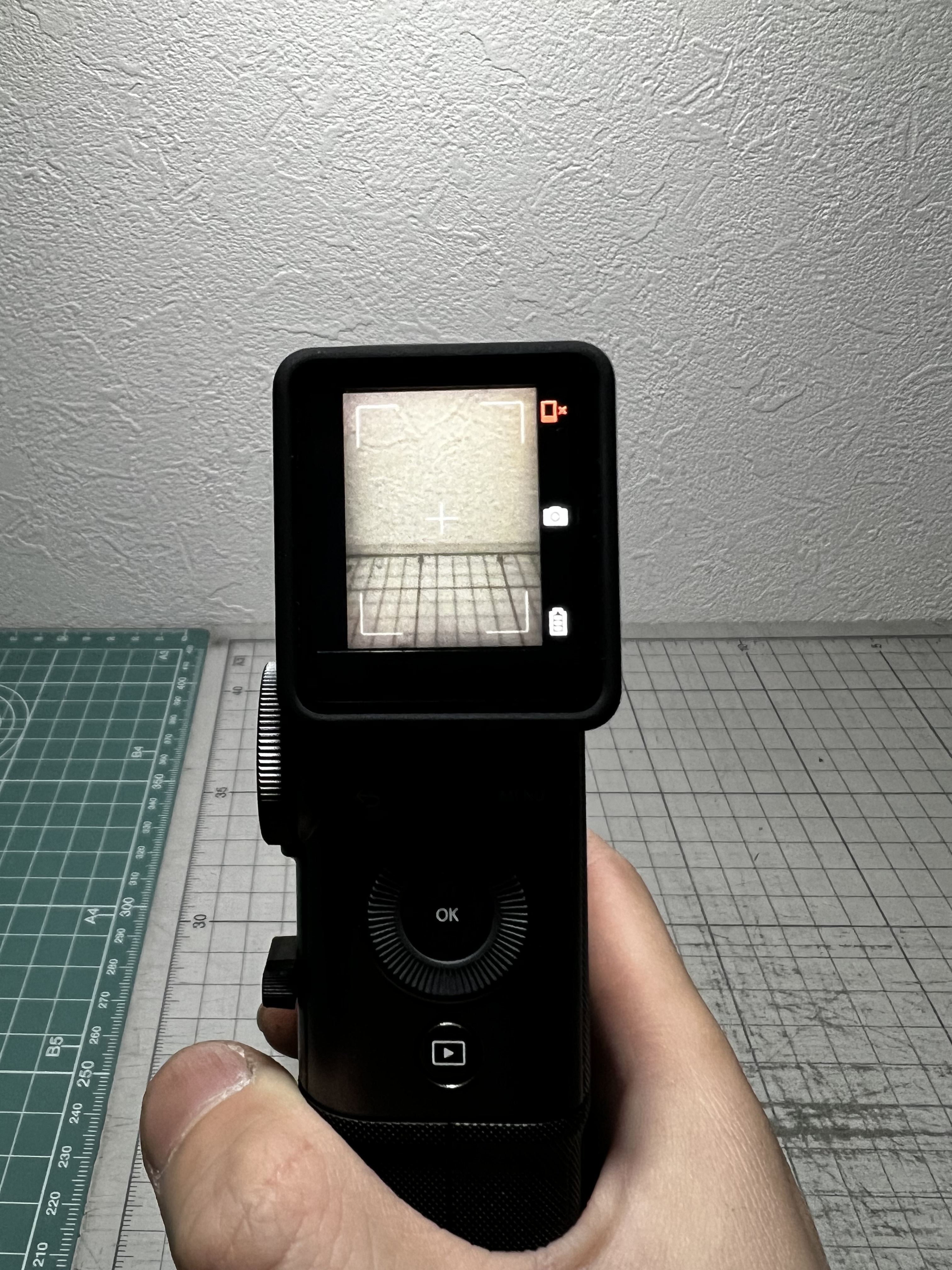 電源オンで小さな画面が表示され、ここを覗きながら撮影していく感じです。
