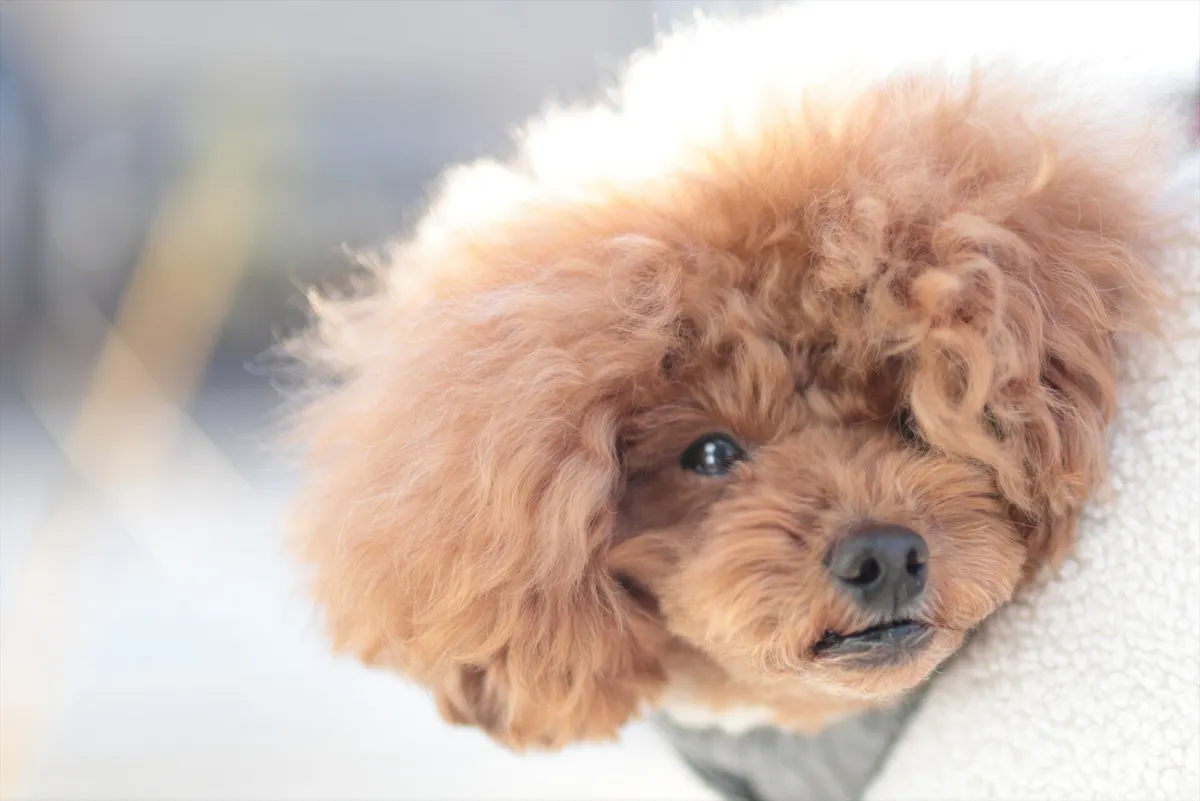 強い逆光を活かし、BEBEの毛並みの縁に光のラインライトを作っています。お正月らしいポートレートです。
