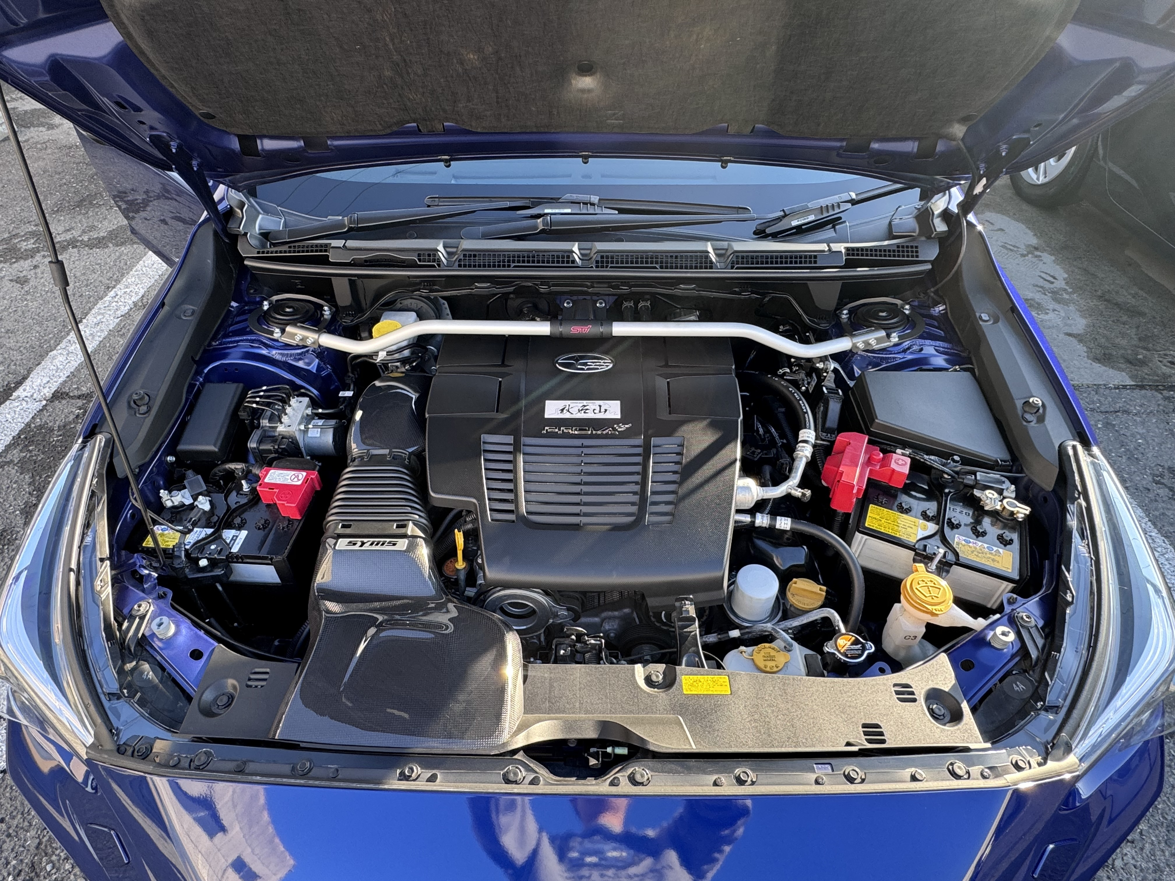3つ目として、排気系はSTIマフラーに換装して通気抵抗を約29%低減して、加速に対してリニアに良い音がするので、ドライバーはめっちゃやる気になります。エンジンが冷えた状態では、エンジン始動から10秒ほどすごい音がしますが、それ以外は踏まない限りは至って静かで、ご近所からもクレームはありません。当時はこれ以外のマフラー選択肢は皆無でしたが、今はSYMSさんや柿本さんからも出たので選択肢が増えましたね。