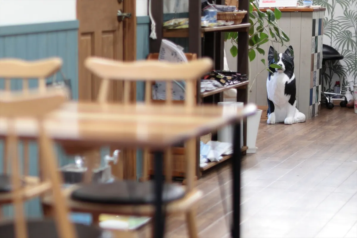 4. 店内の奥には看板犬(コタロー)の姿も。木の温もりを感じる、落ち着いたインテリアが素敵です。