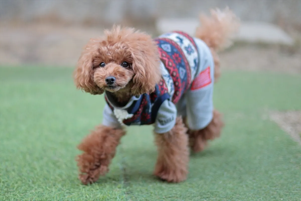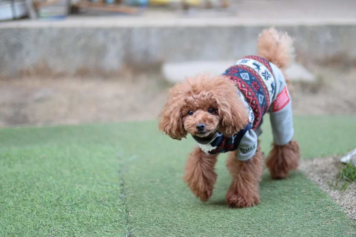 9. ドッグランで軽やかな足取り。お気に入りのウェアを着て、外の冷たい空気を目一杯楽しんでいます。