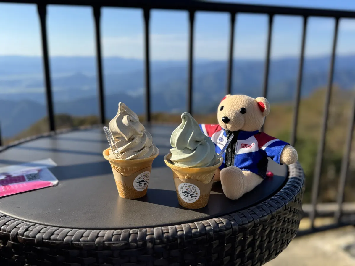 のんびりソフトを食べるhanaとAyako😆