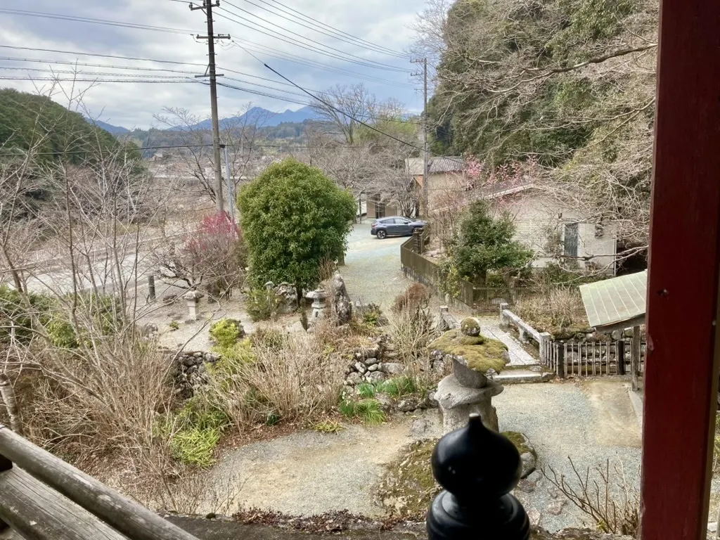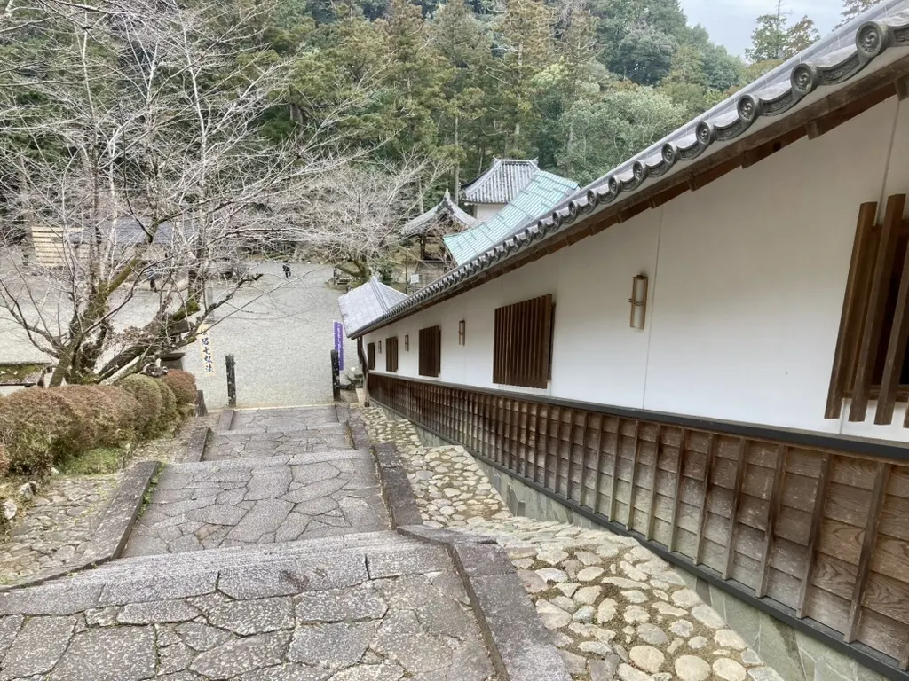 大師堂からの眺め。右側は回廊、屋根付の階段です。