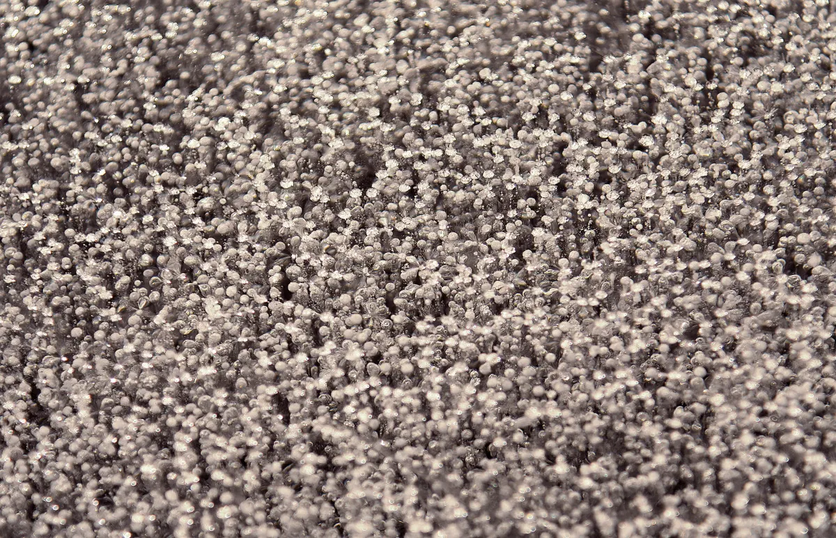 湖面はアイスバブルのような、それにしては粒が小さいような、一粒1㎝程度の泡…