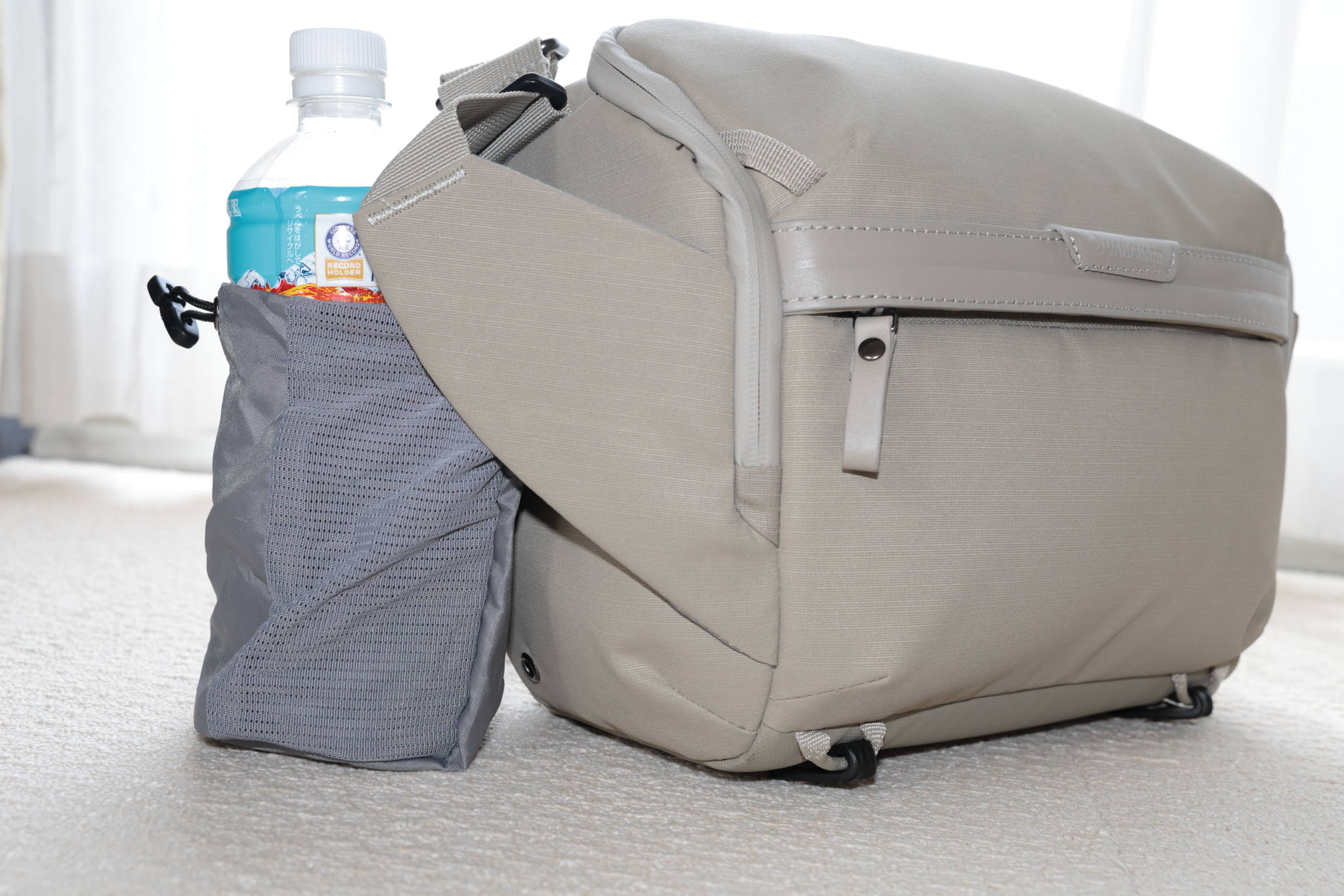 巷で人気のバッグを調べ尽くしましたが、6Lでは足りず、10Lでは大袈裟。そこでミリ単位の寸法を割り出し、辿り着いたのが「7L」という数字でした。さらに、過酷な撮影現場で生命線となる「ペットボトルホルダー」の有無。