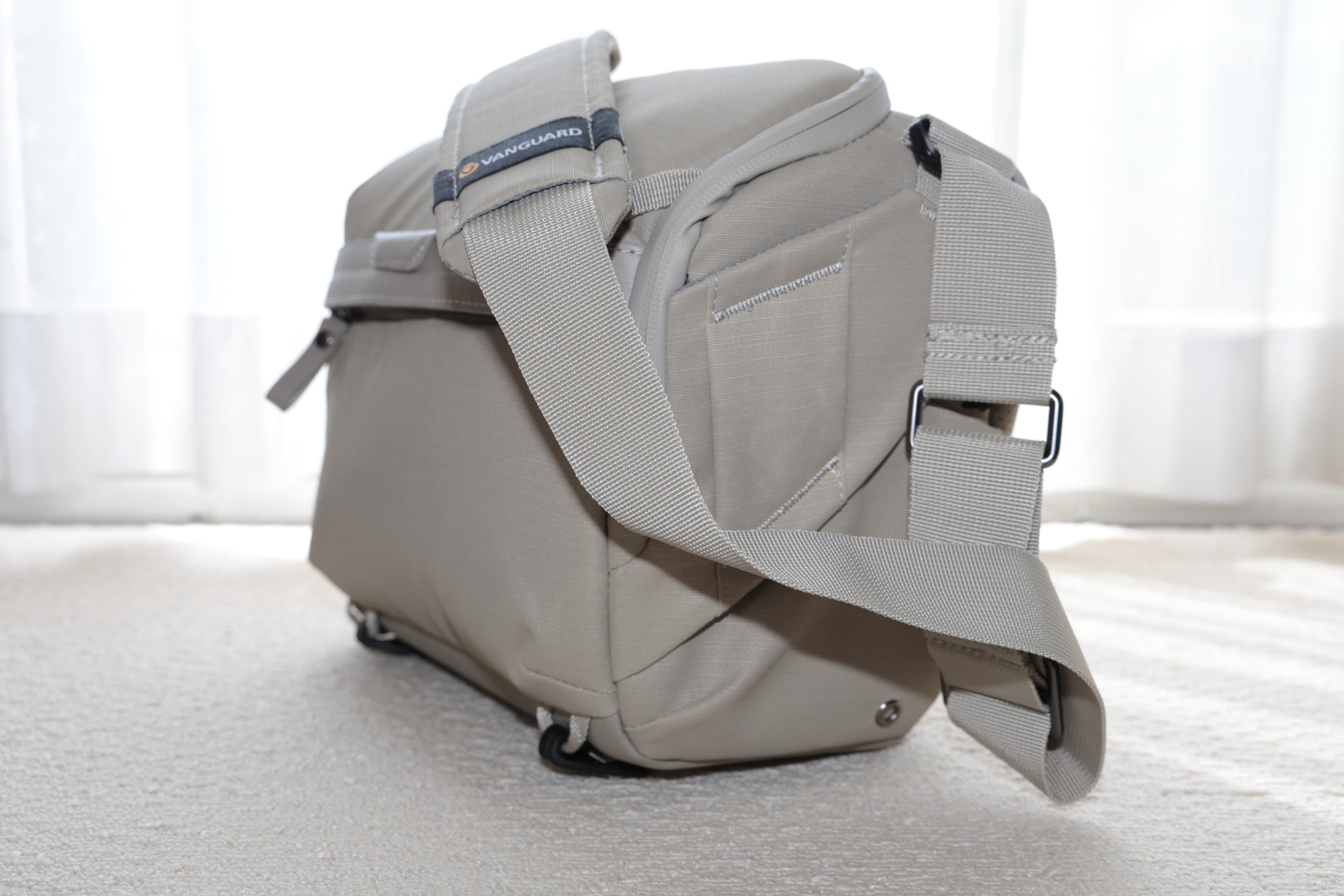 1. 街歩き用のスナップ撮影のお供は、こちらの「Vanguard VEO METRO S7L CM」にしました。2025年3月に発売された製品です。前面にもファスナー付きのポケットがあります。
