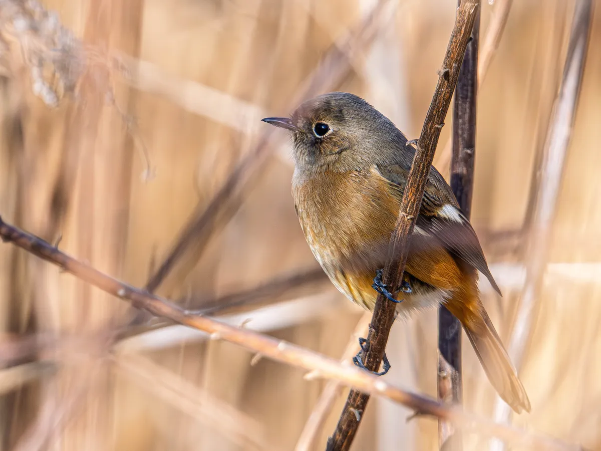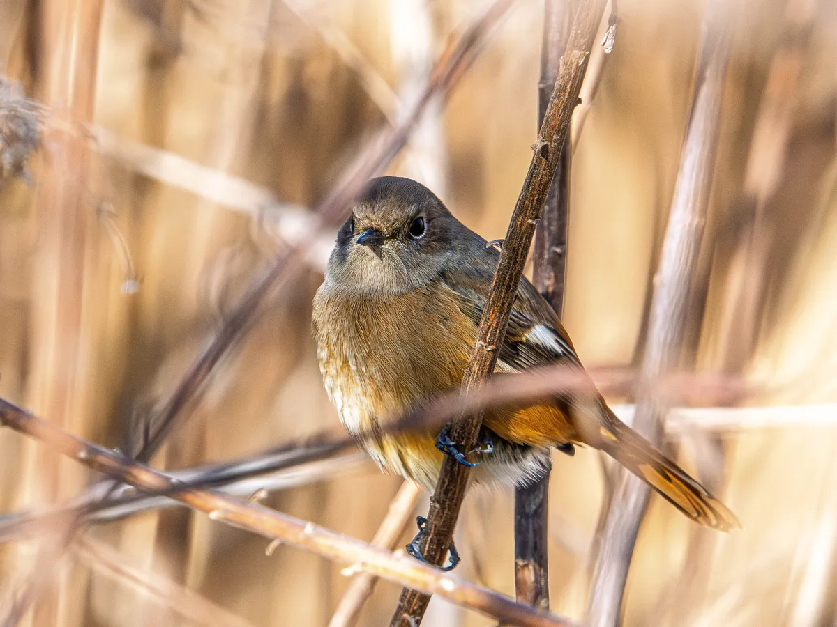 ⬅️これは駐車場へ戻る途中に鳴き声がする方へ行ってみたら、葦原の中にいたジョウビタキ |