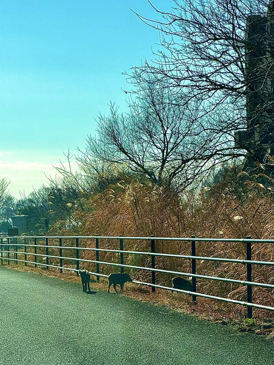 途中、葦原内の道ではタヌキとバッタリ‼️