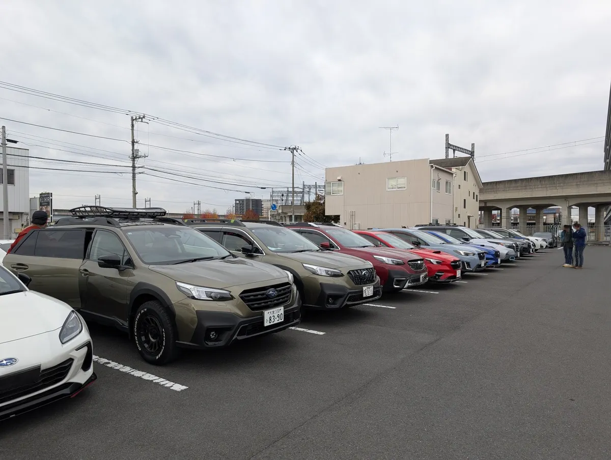 駐車場、私の停めた並びに見知った車がたくさん…、ああ、このクリムゾンレッドはくまこさんかな、これXVはスパナくんが乗ってるからふかフカさんかな、ゴリゴリのSLフォレはyu-kiさんかなと切ない気持ちにあと惹かれながら、太田市を後にしました。