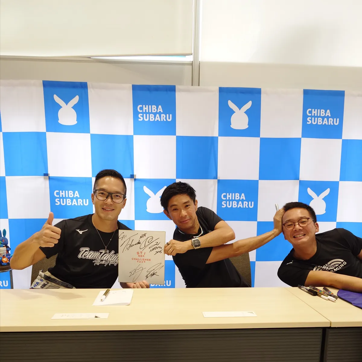 前日の千葉スバルさんNBR会からのサイン色紙に沢田監督、孝太さん、タクティ、凜太郎さんのNBRメンバー(奥本さんゴメン)にも入ってくる人と阻止する人🤣