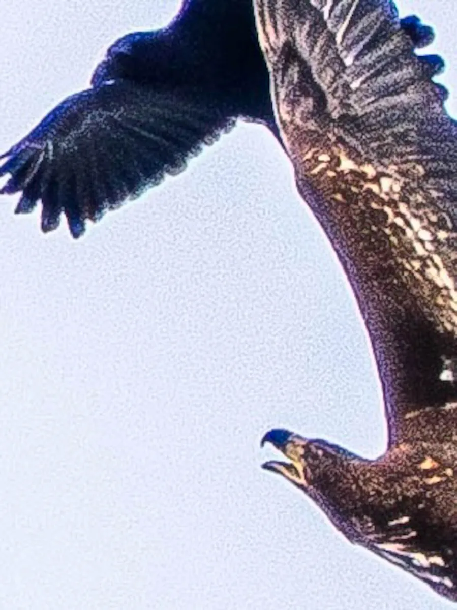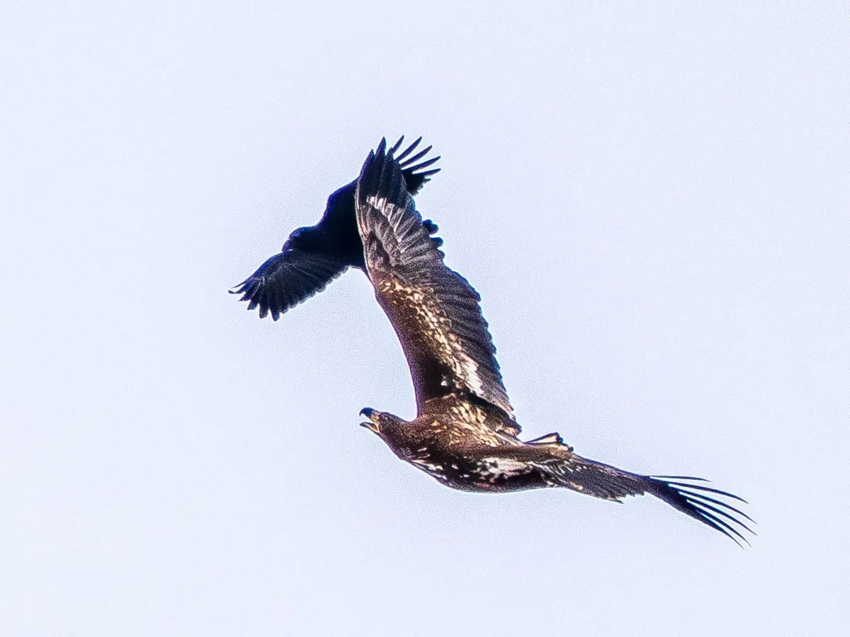 実はカラスの群れがいる一角に入って来たオジロワシに対して、カラスが追い払おうとして纏わりついていたのでした。
