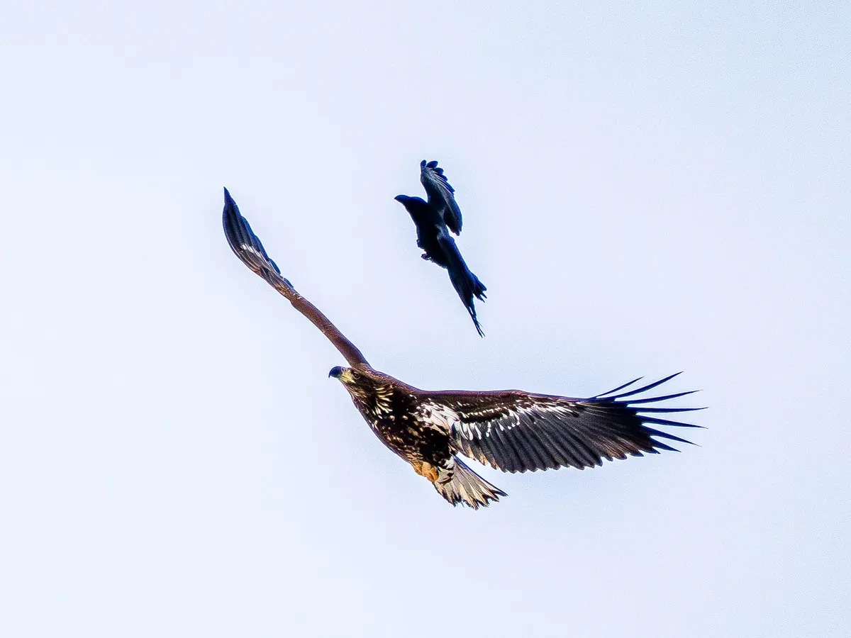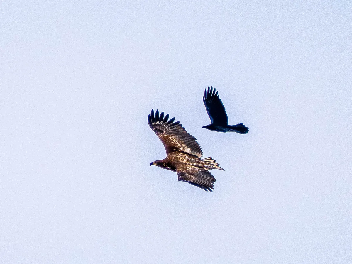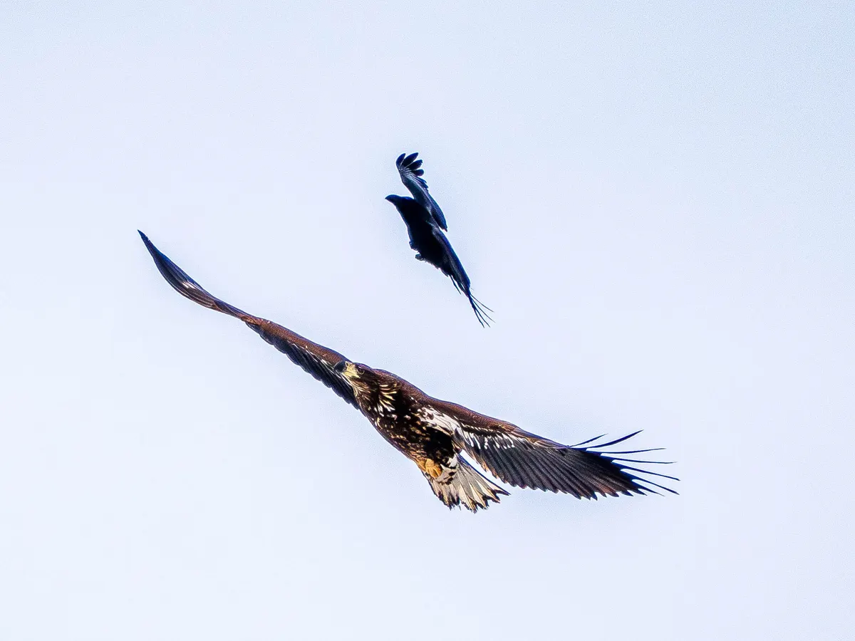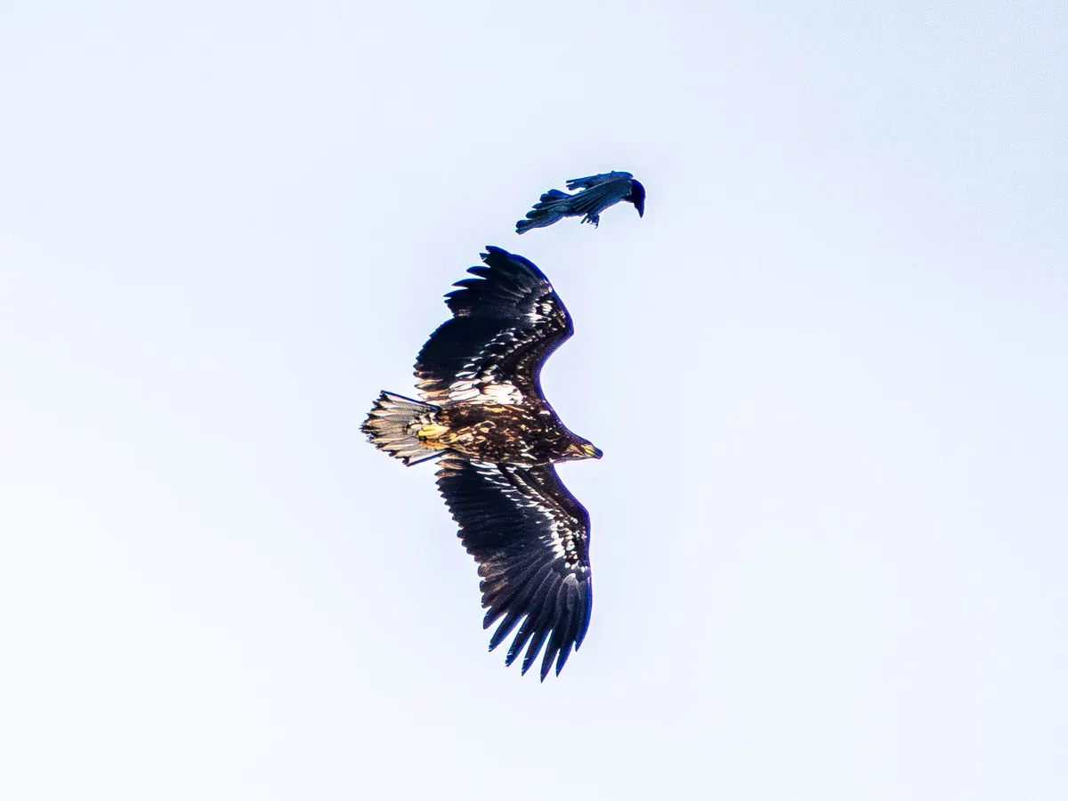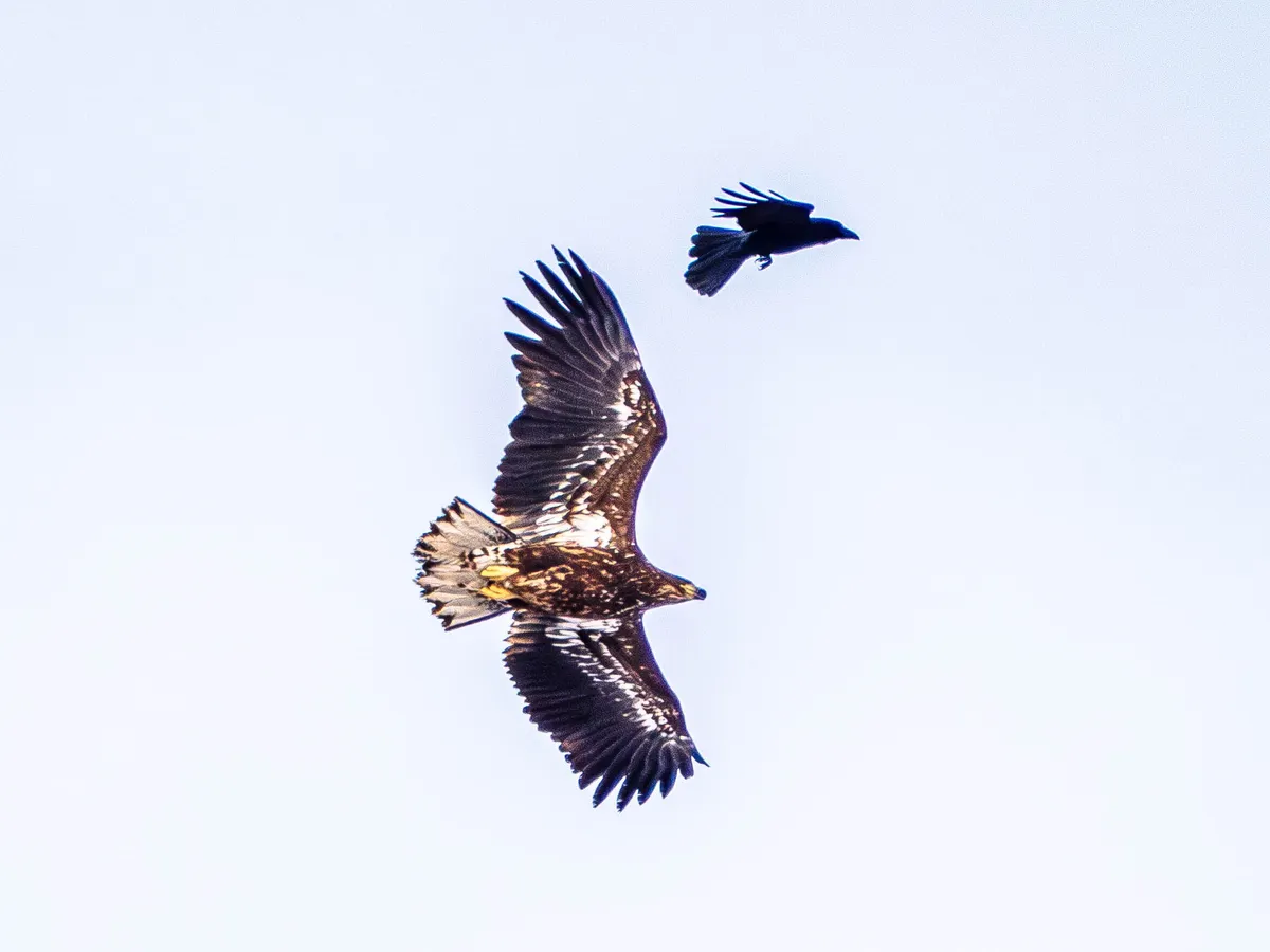 北海道で撮影したオジロワシとカラスです