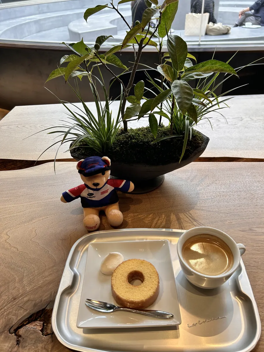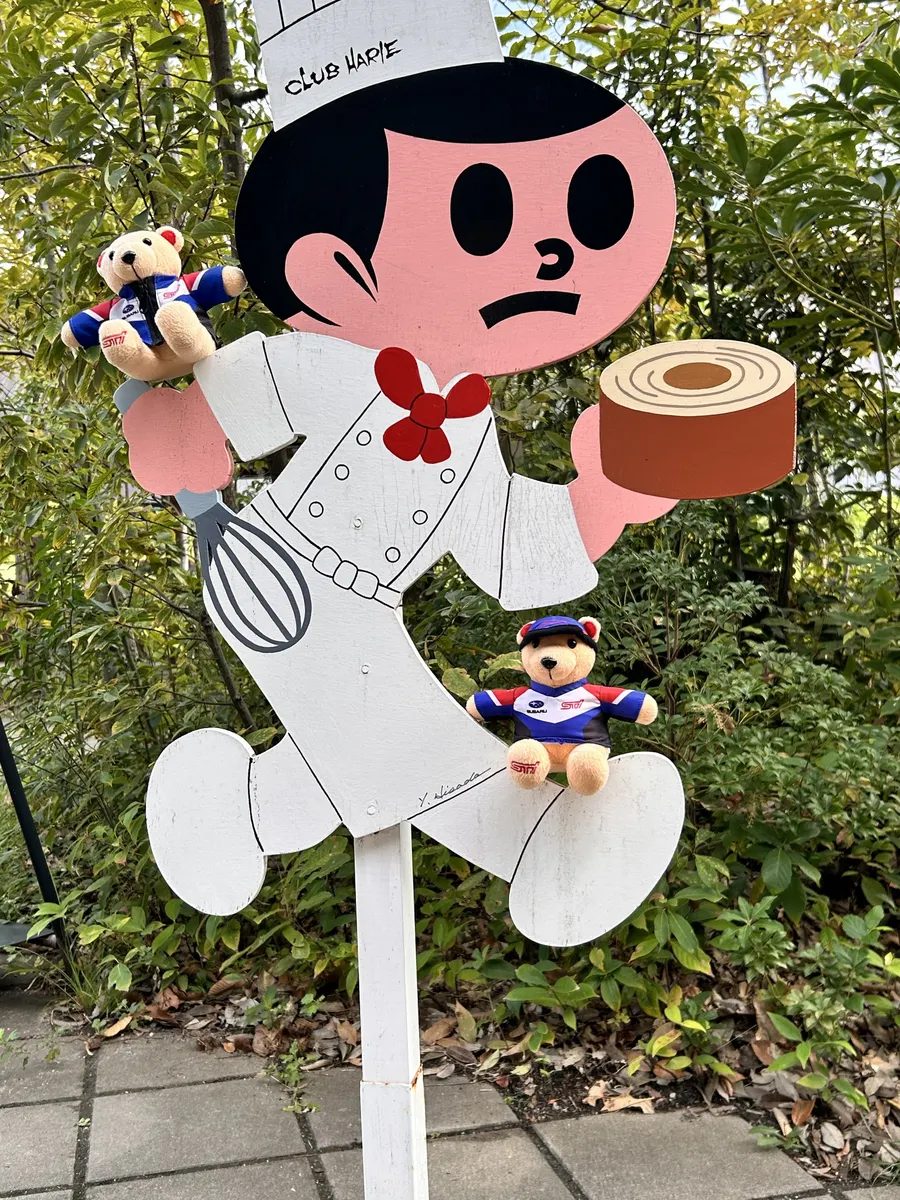まずは、ラコリーナに向かい車を停めて写真を撮っていると、ベアちゃんを忘れたと取りに帰るAyakoさん。