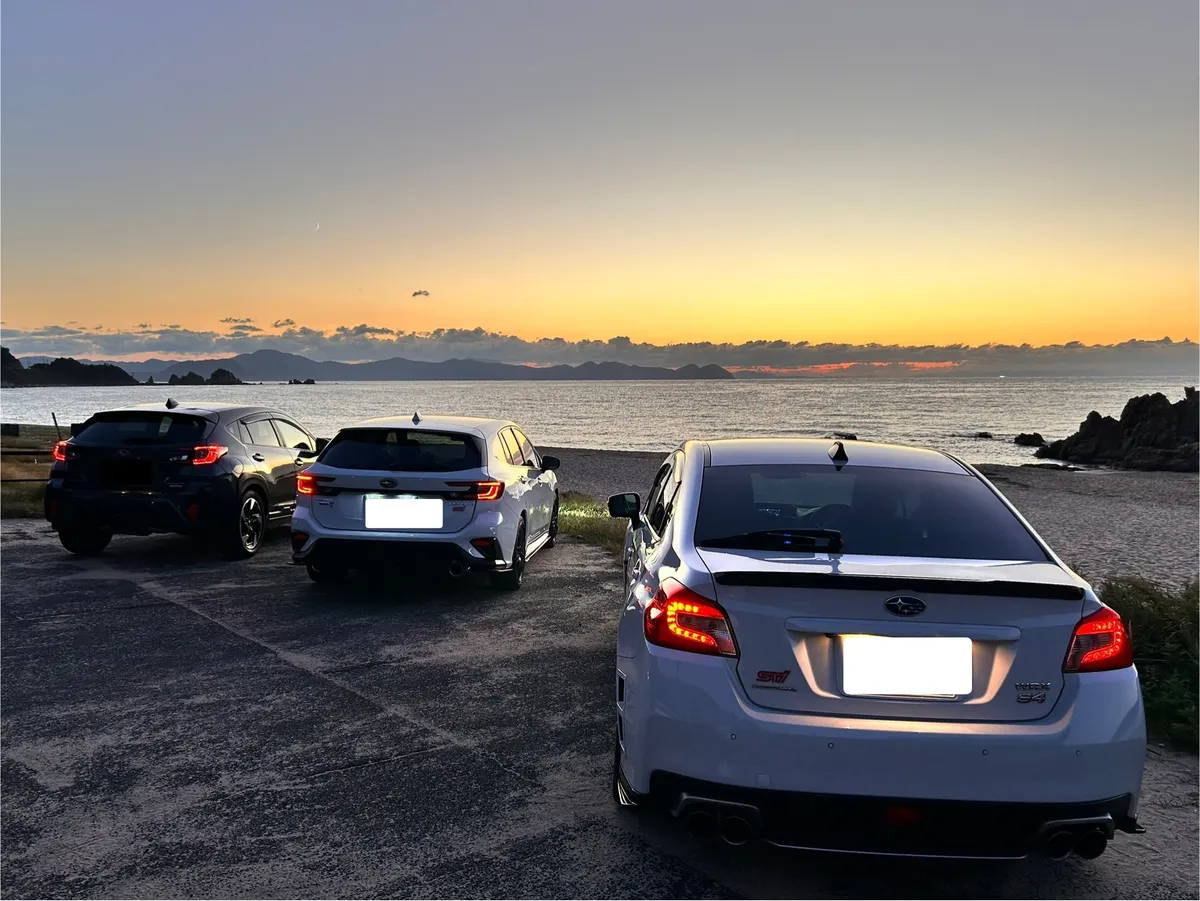 伊吹山と3台並んだ黄昏時の水晶浜のお写真もとても素敵です。