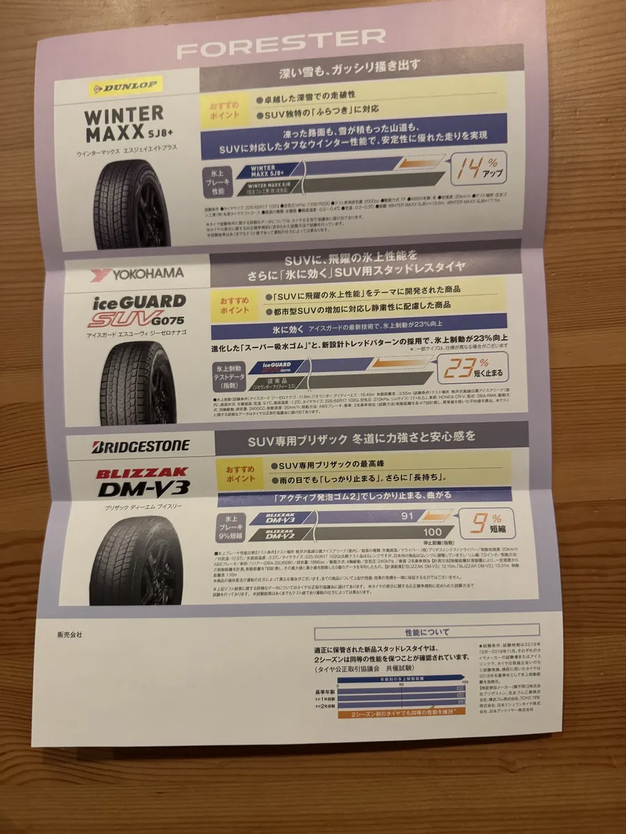 商談中だったのにも関わらず、お会計から駐車場🅿️までは担当セールスさんの対応だったので、「スタッドレスのチラシってありますか?」と聞いて、チラシを貰ってきました。