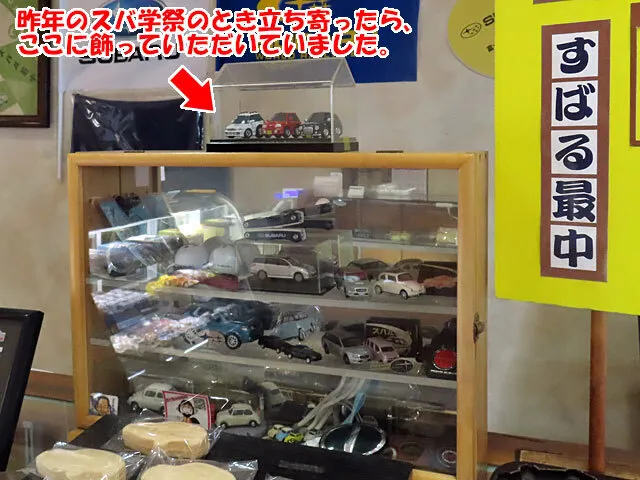 一部の車種はスバル最中の伊勢屋さんに飾っていただいているので、スバ学祭の折に見かけた方もいらっしゃるのではないかと思います。