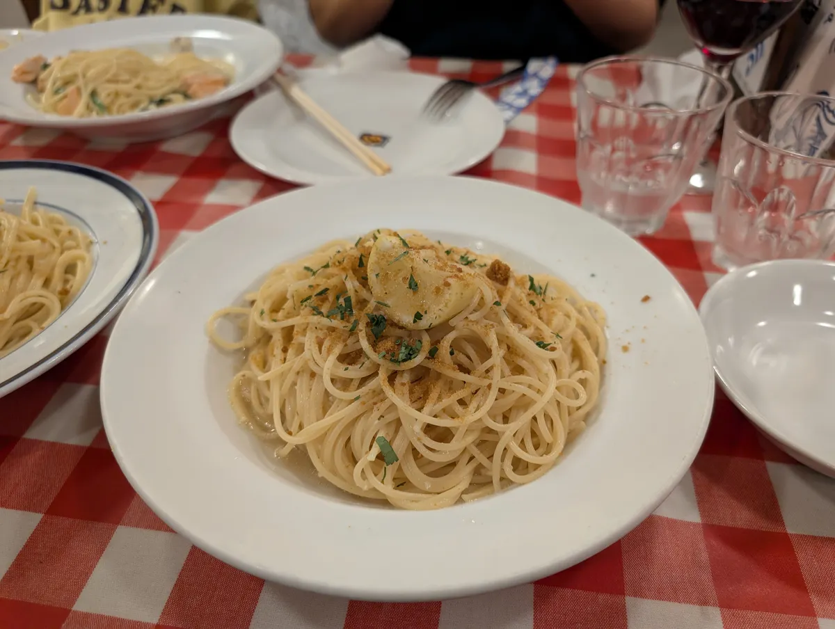 お昼ご飯はラ・ベファーナというイタリアンに行きました。11:30OPEN直前お店の前は予約客がワラワラ