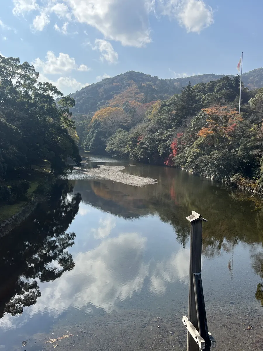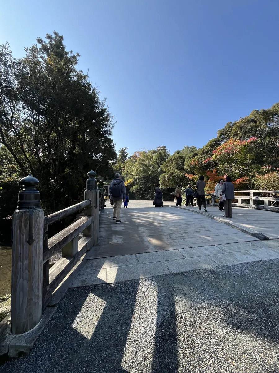 五十鈴川にかかる宇治橋を渡り、参道を進むとこちらも不思議と神聖な気持ちに‥