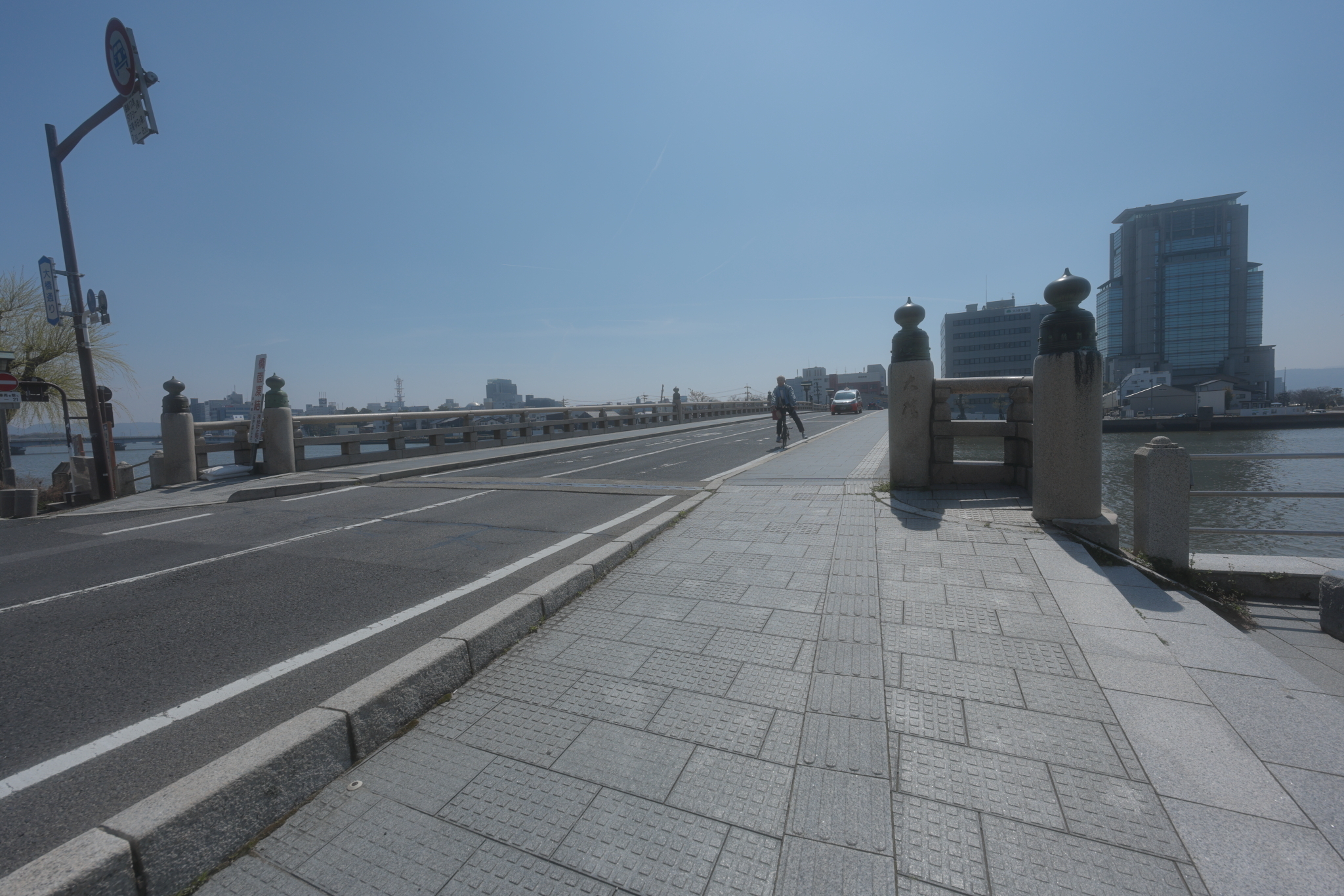 15. 山口薬局から南を見るとすぐ松江大橋です。ここもよくドラマに出てきましたね。近くには「新大橋」などの別の橋も架けられていますが、松江大橋自体は歴史的な場所を維持しています。